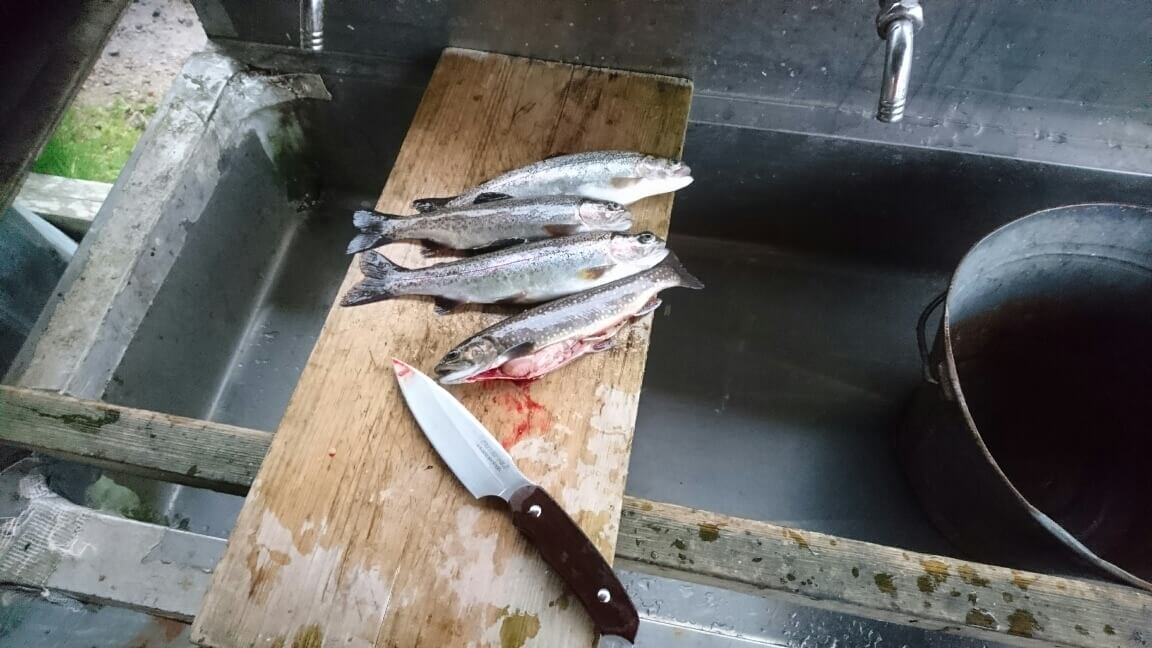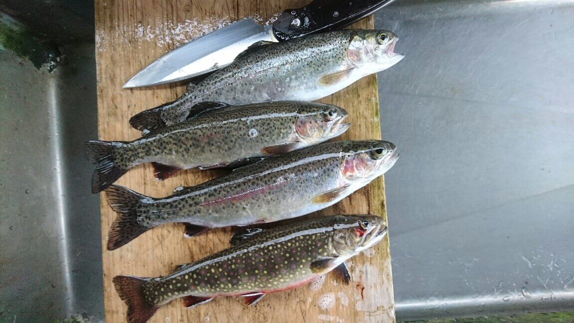 釣れたニジマスとブルックのヒレ、特に尾ヒレが綺麗だ。