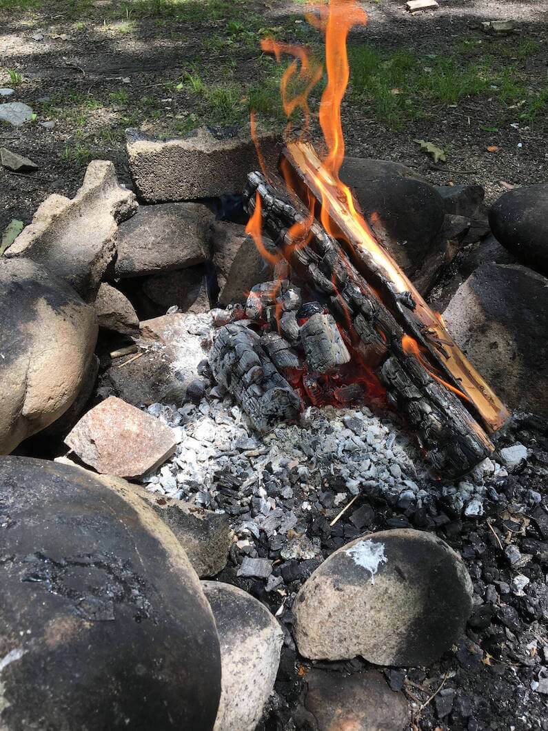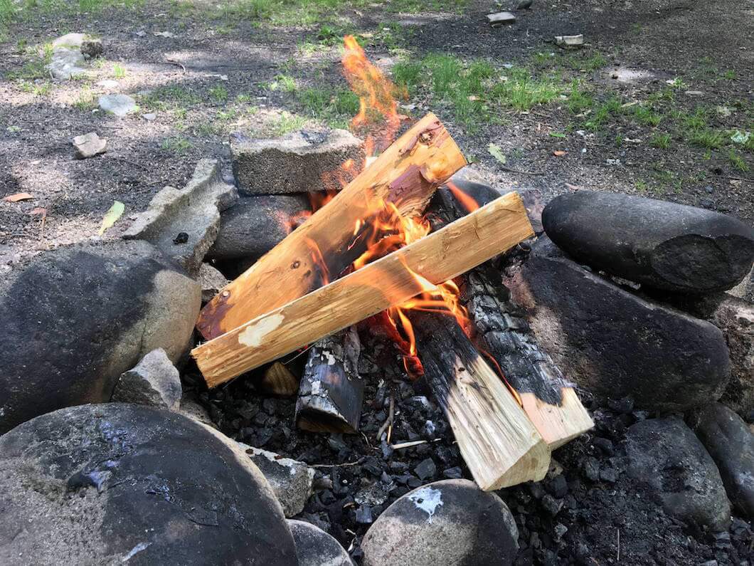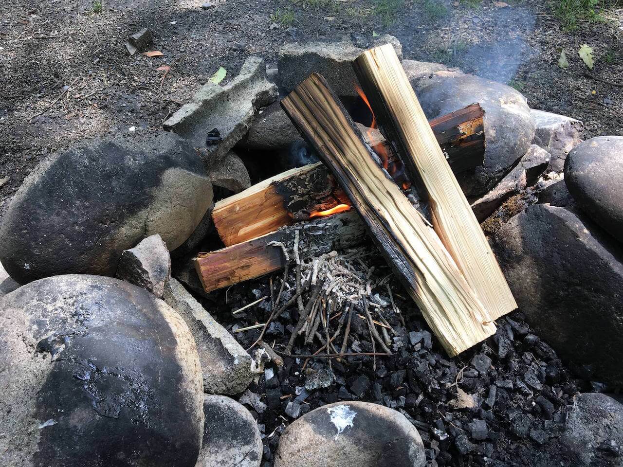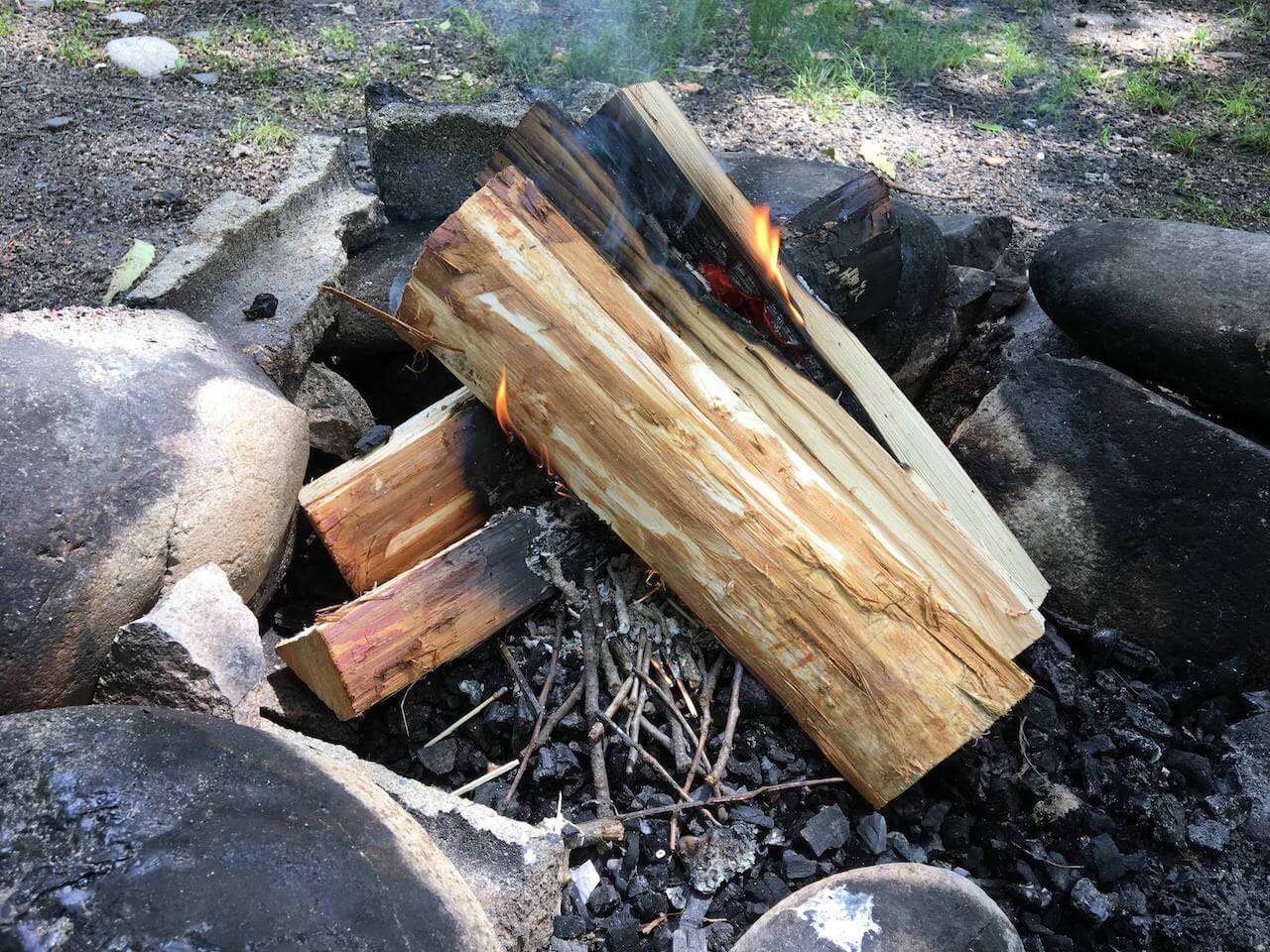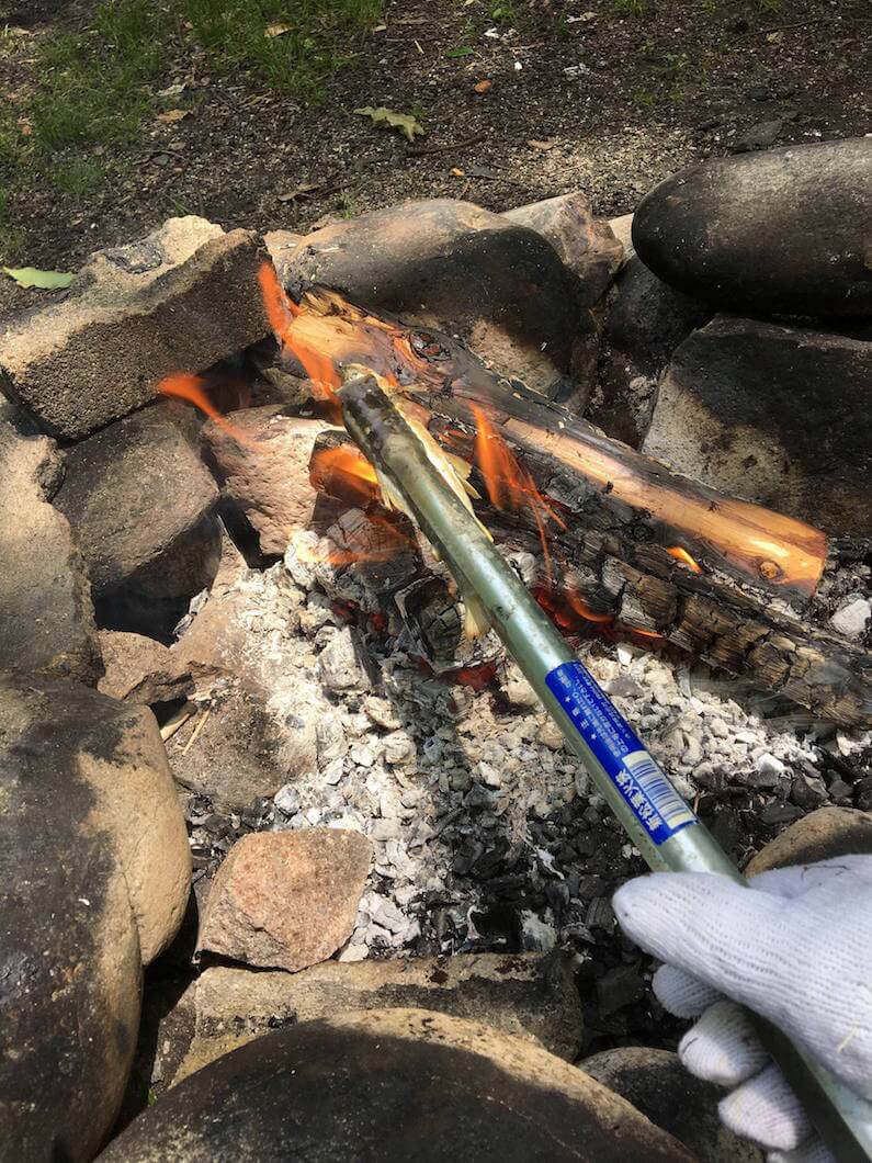 あと、火の粉て衣服に穴が空くからポリエステル製とかナイロン製の服はやめといた方がええで、長袖長ズボン推奨で