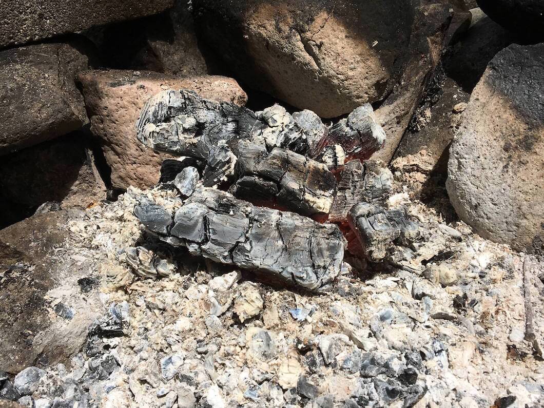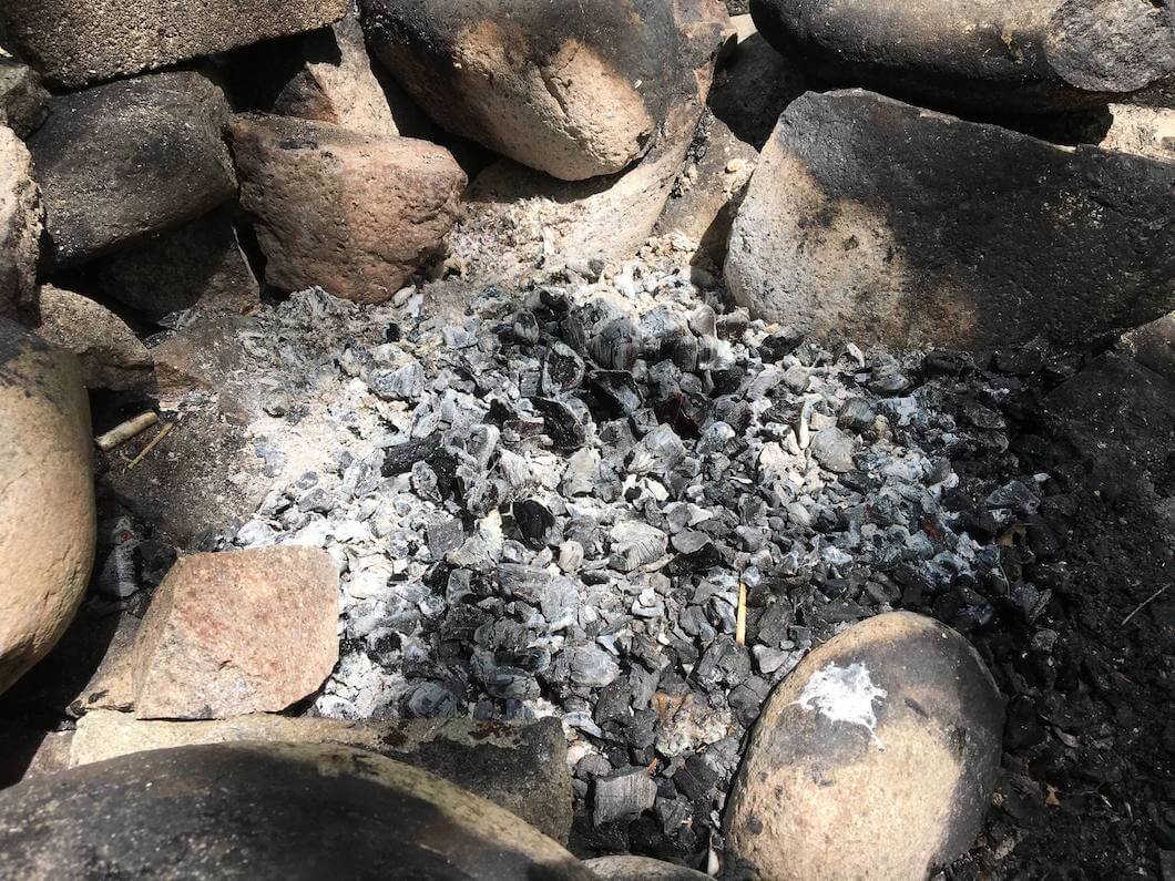こんな風に白色になっとったら、ちゃんと薪が燃えてたってことなんや