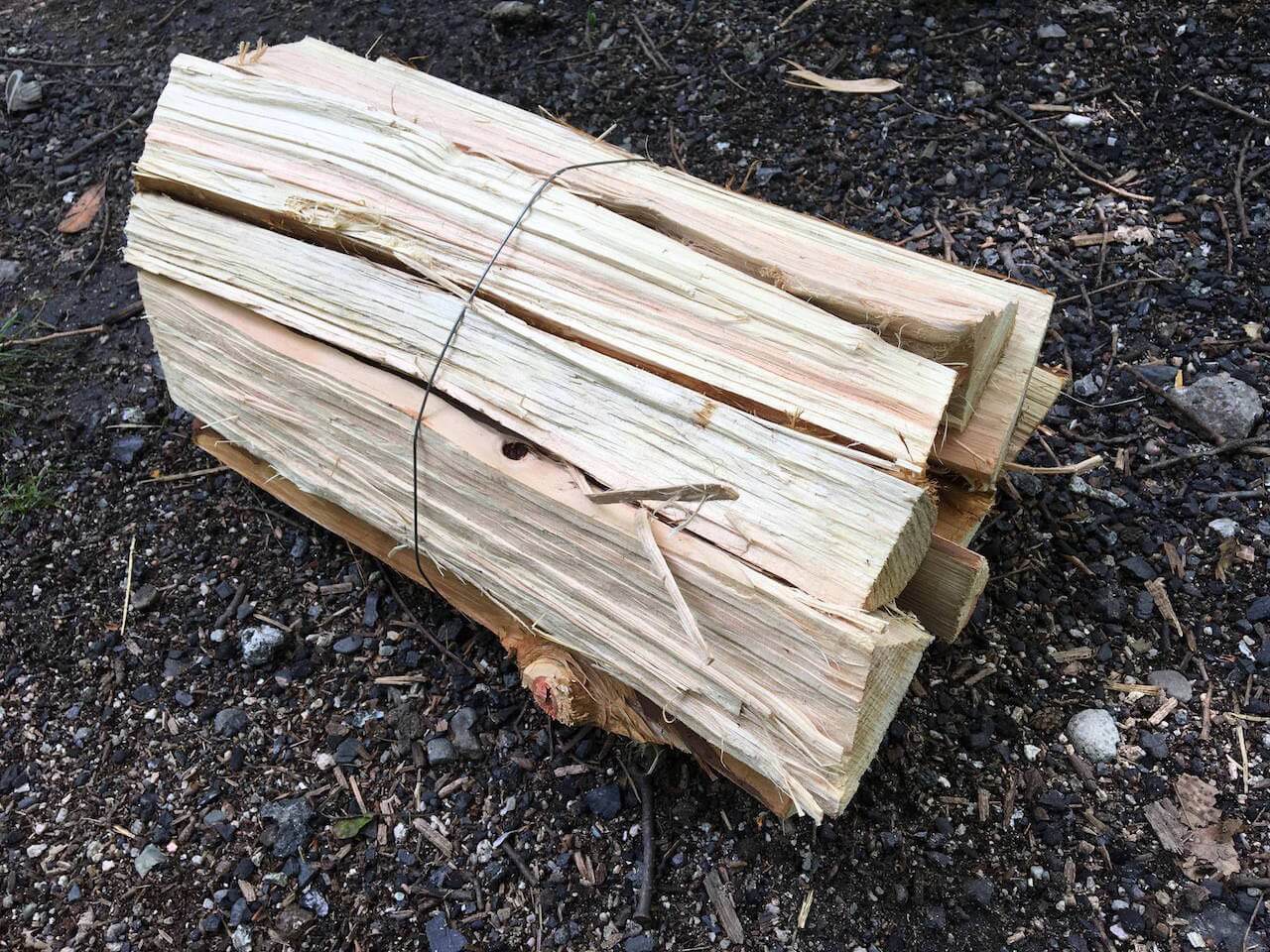薪の燃え残りは、水を入れた牛乳パックに入れてガムテープで蓋して持って帰るやで