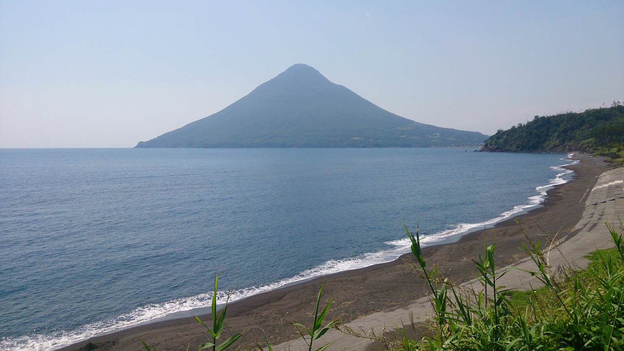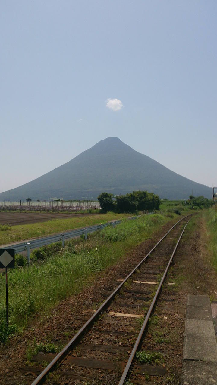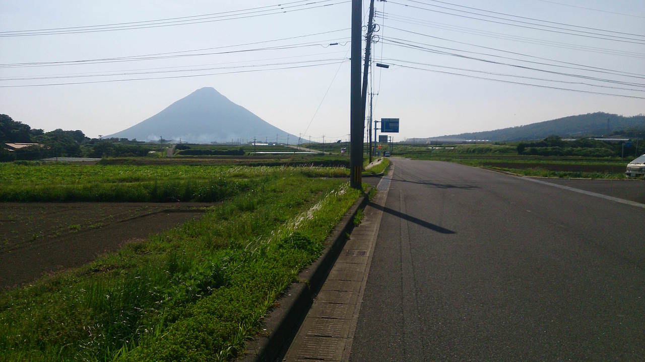 前には開聞岳、後ろには竹山がそびえている