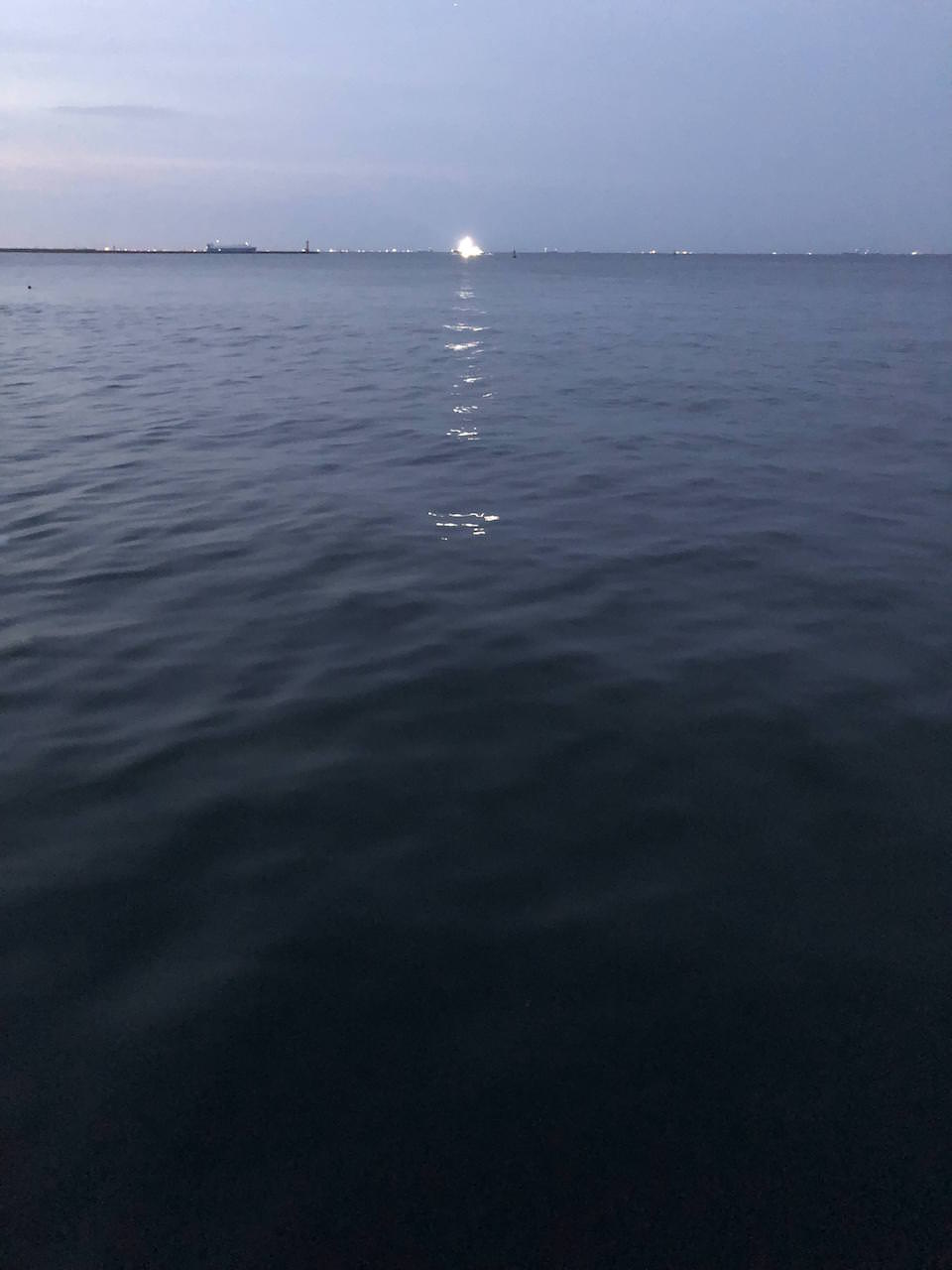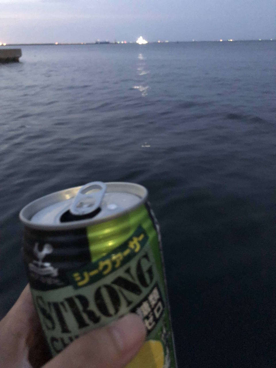 夕陽!!!沈んでるわ…うみかぜ公園で夜景みて酒飲もう…