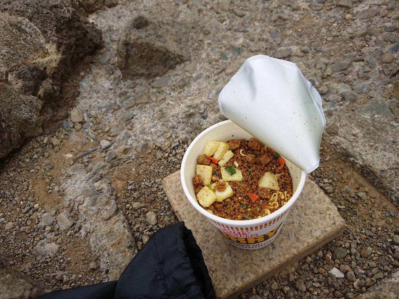 アウトドアとカップヌードルはよく見る組み合わせやなあ