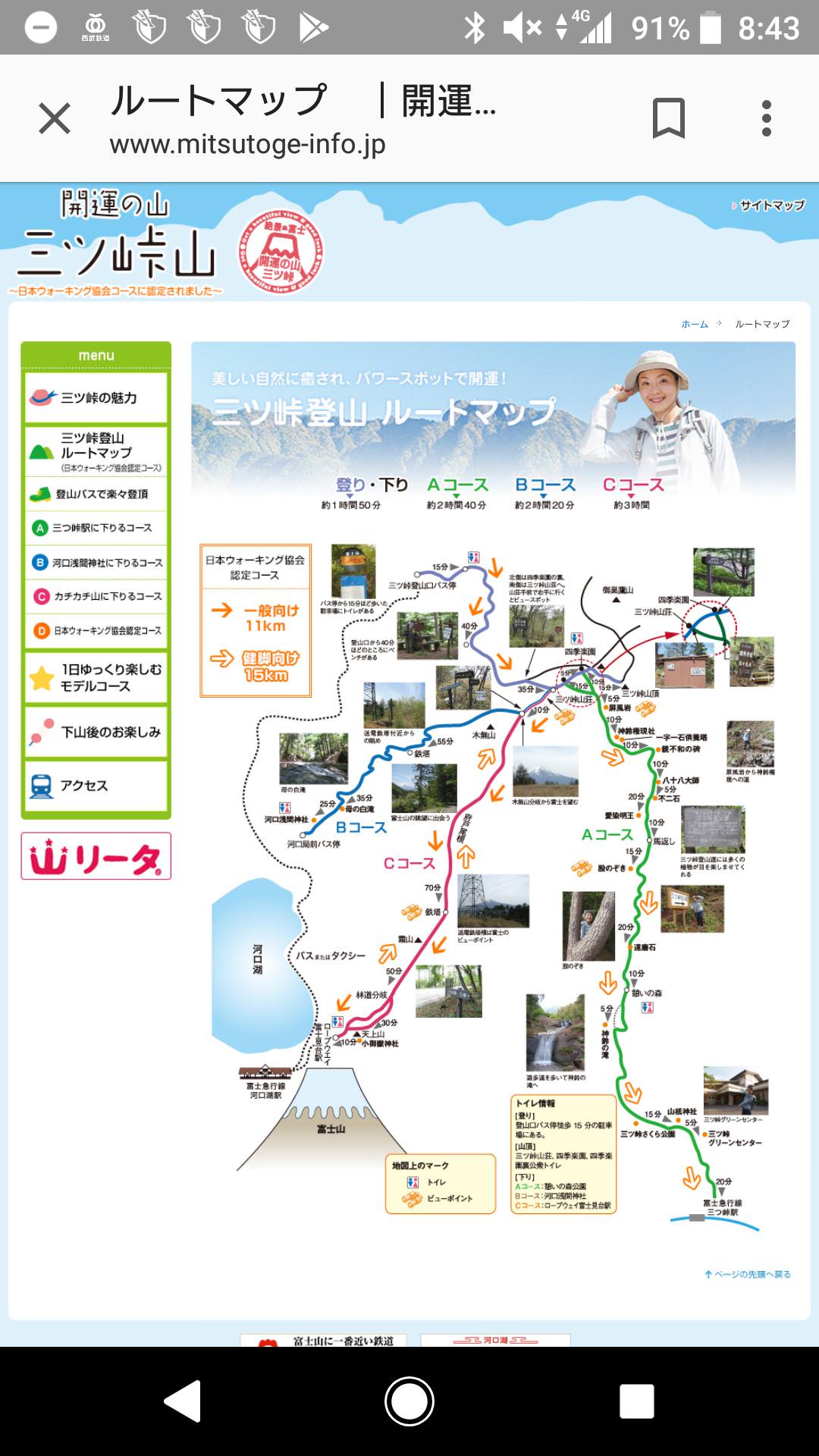 三つ峠駅からのルートや