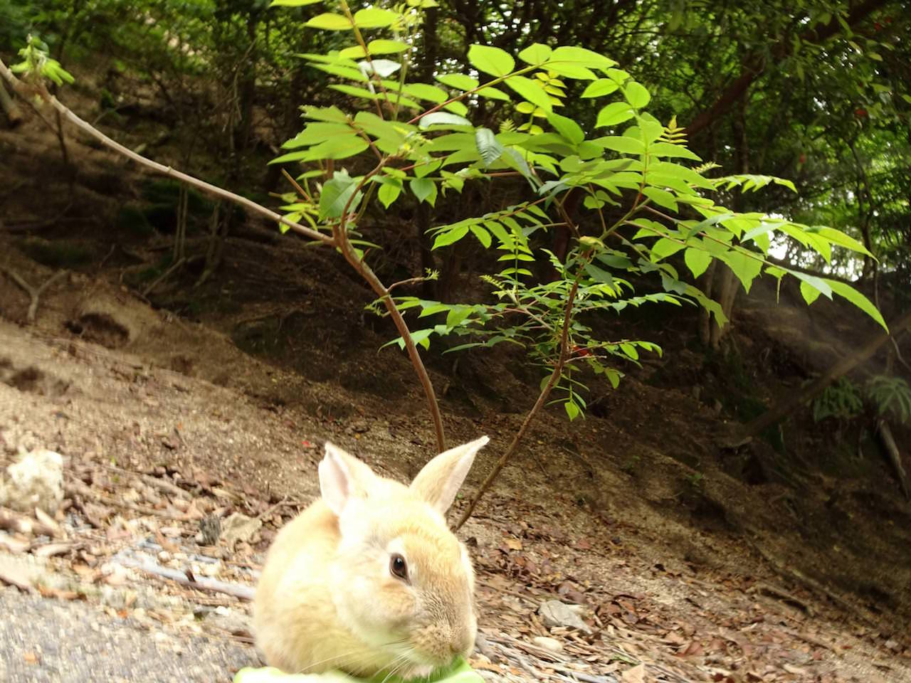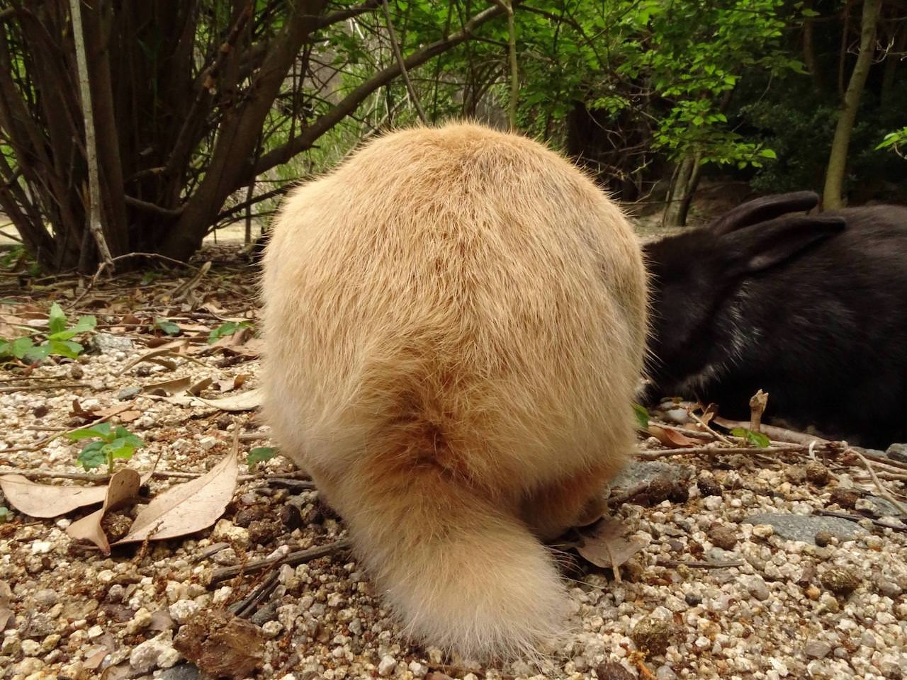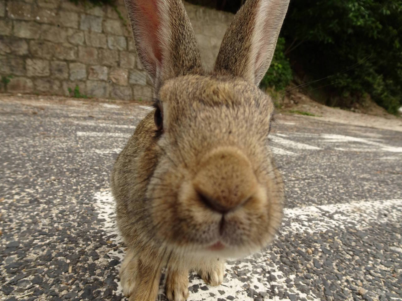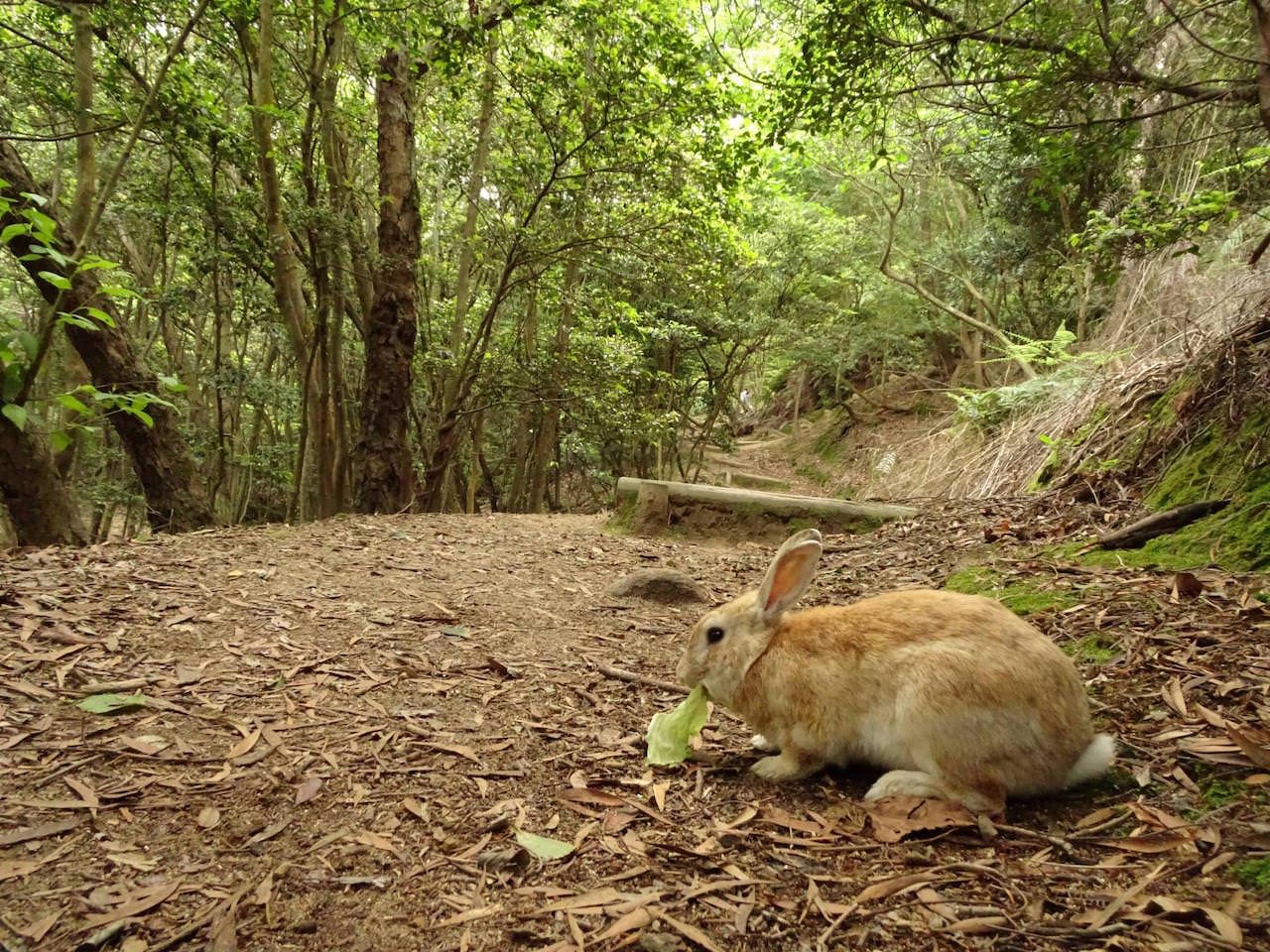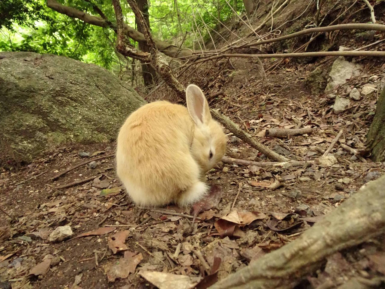 島の傾向として、船着き場付近のうさぎは餌をもらってるから良くなれてる