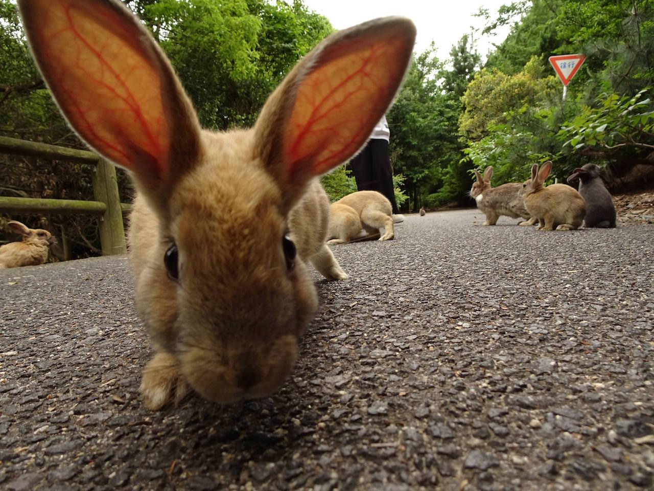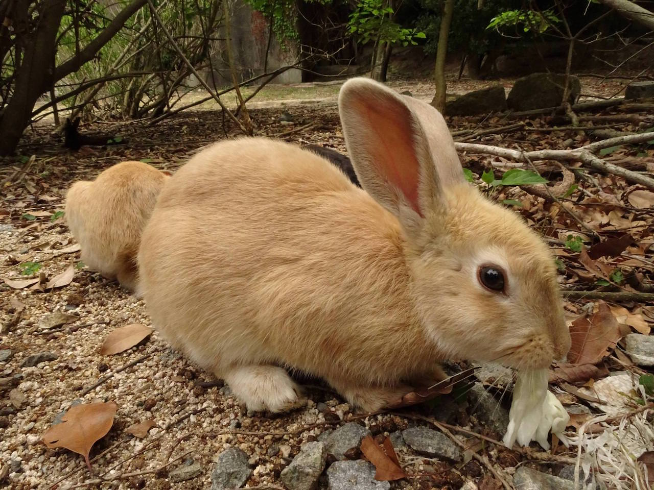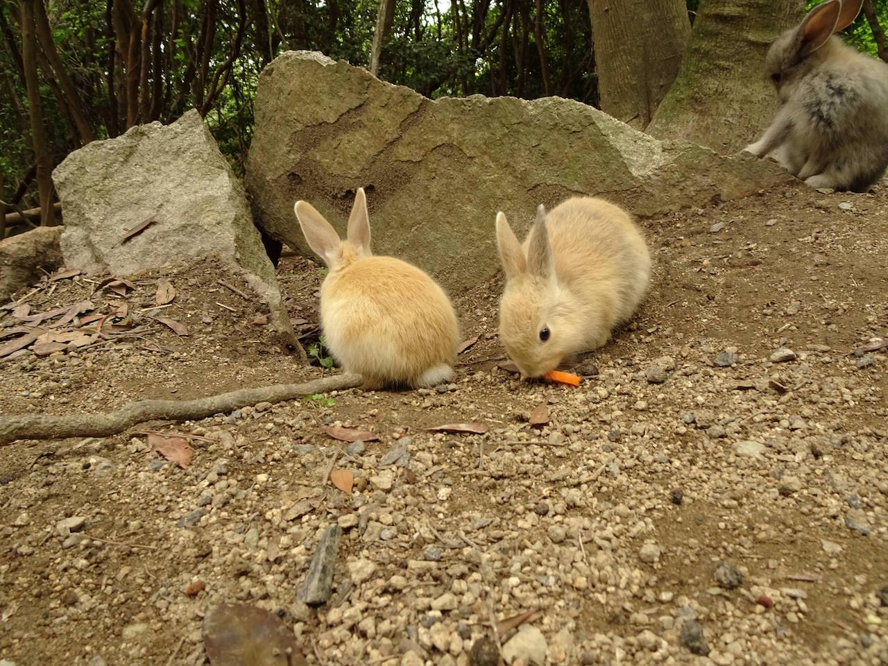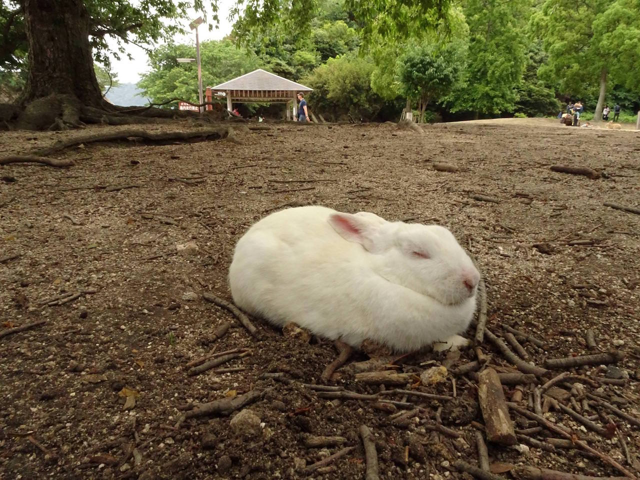 島の傾向として、船着き場付近のうさぎは餌をもらってるから良くなれてる