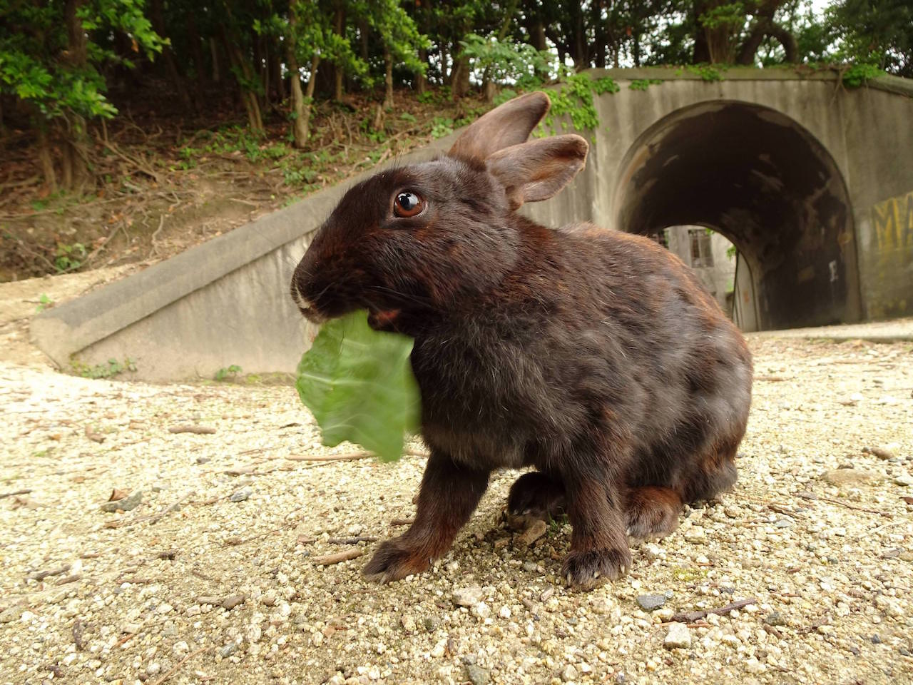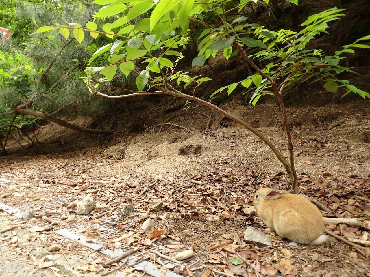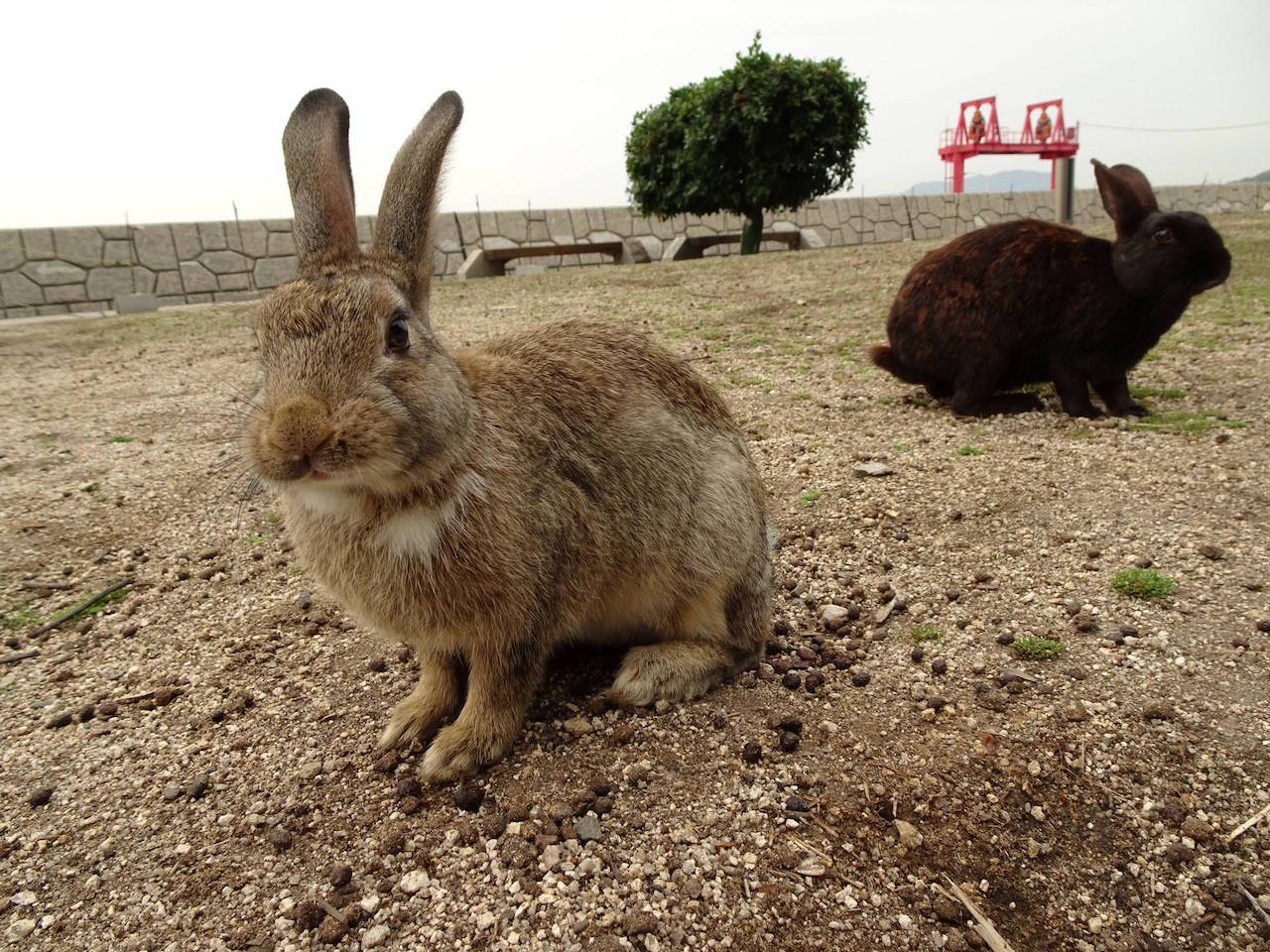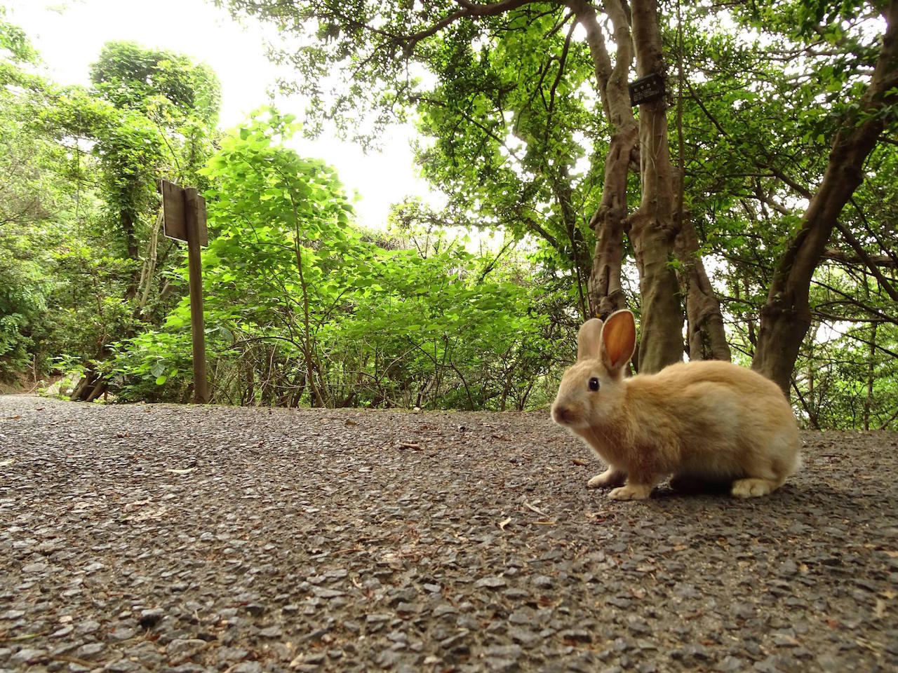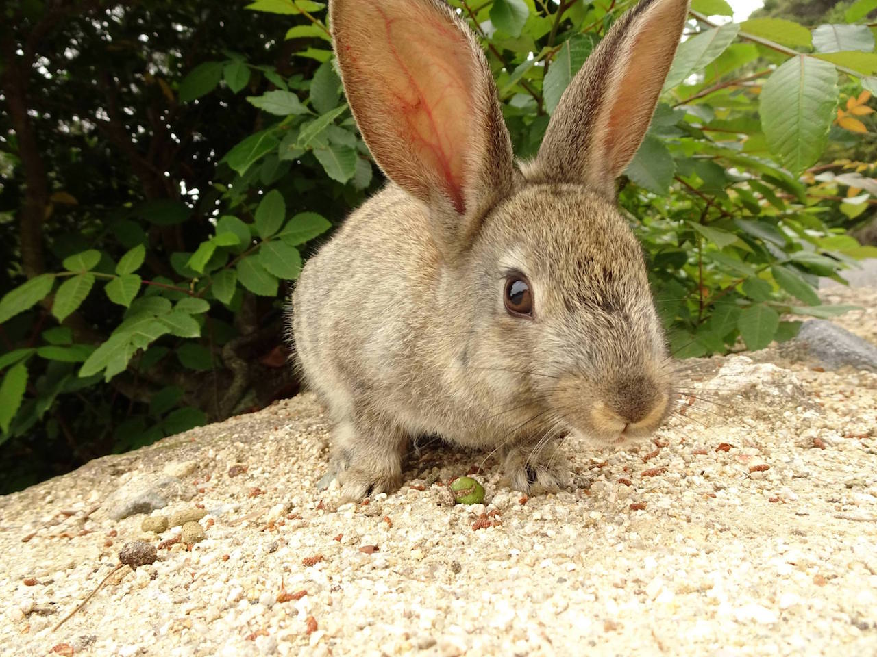 島の傾向として、船着き場付近のうさぎは餌をもらってるから良くなれてる