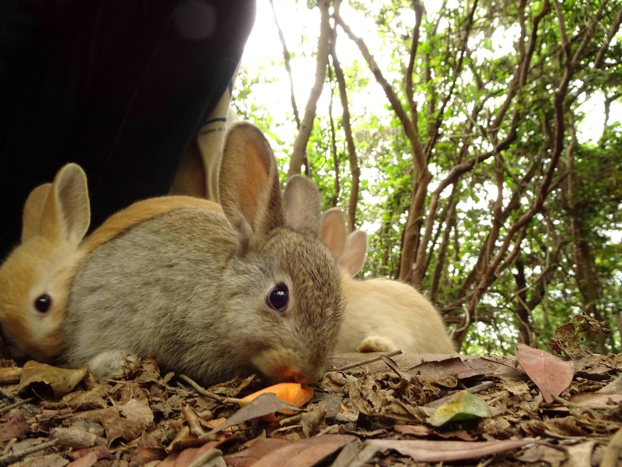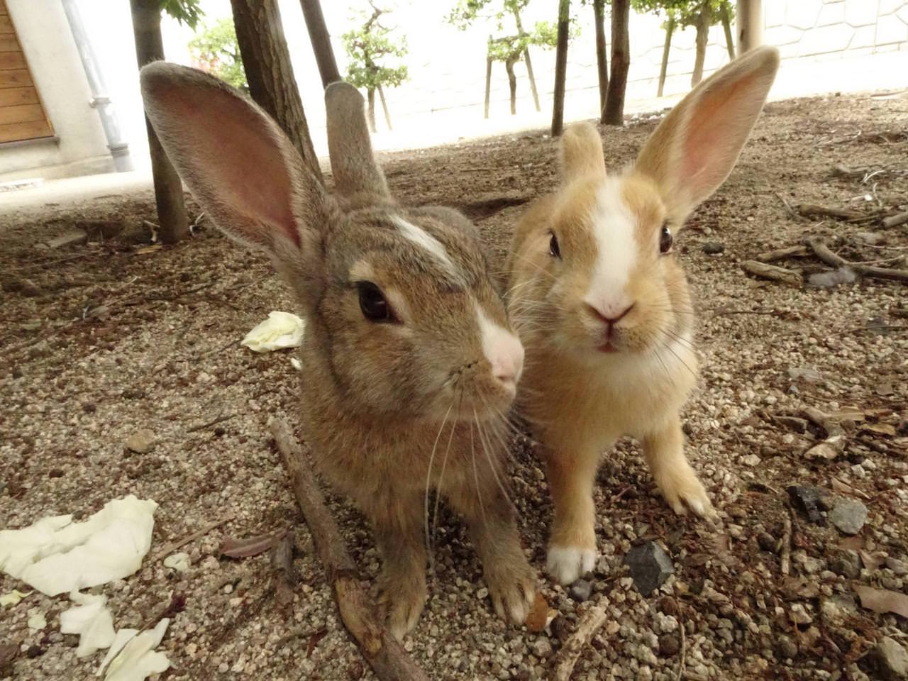 この島のうさぎは人がしゃがむ=食べもんもらえるって刷り込みができてるから