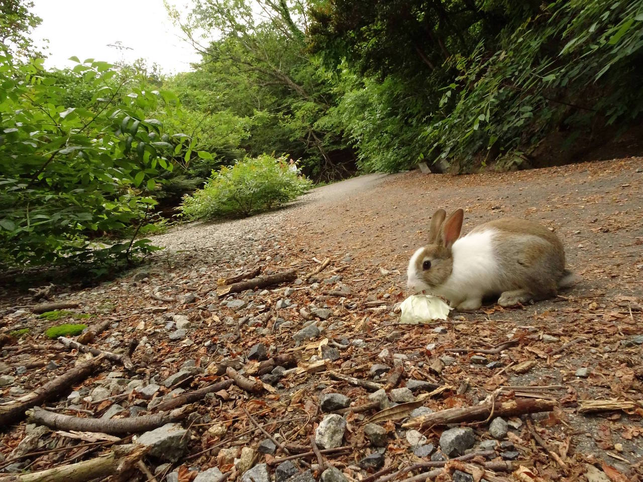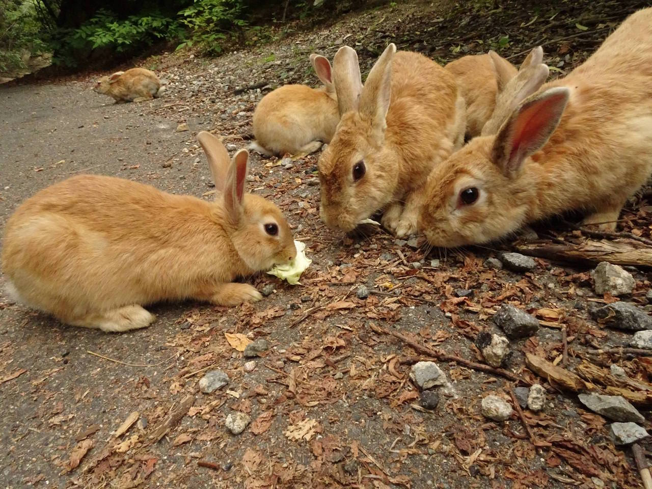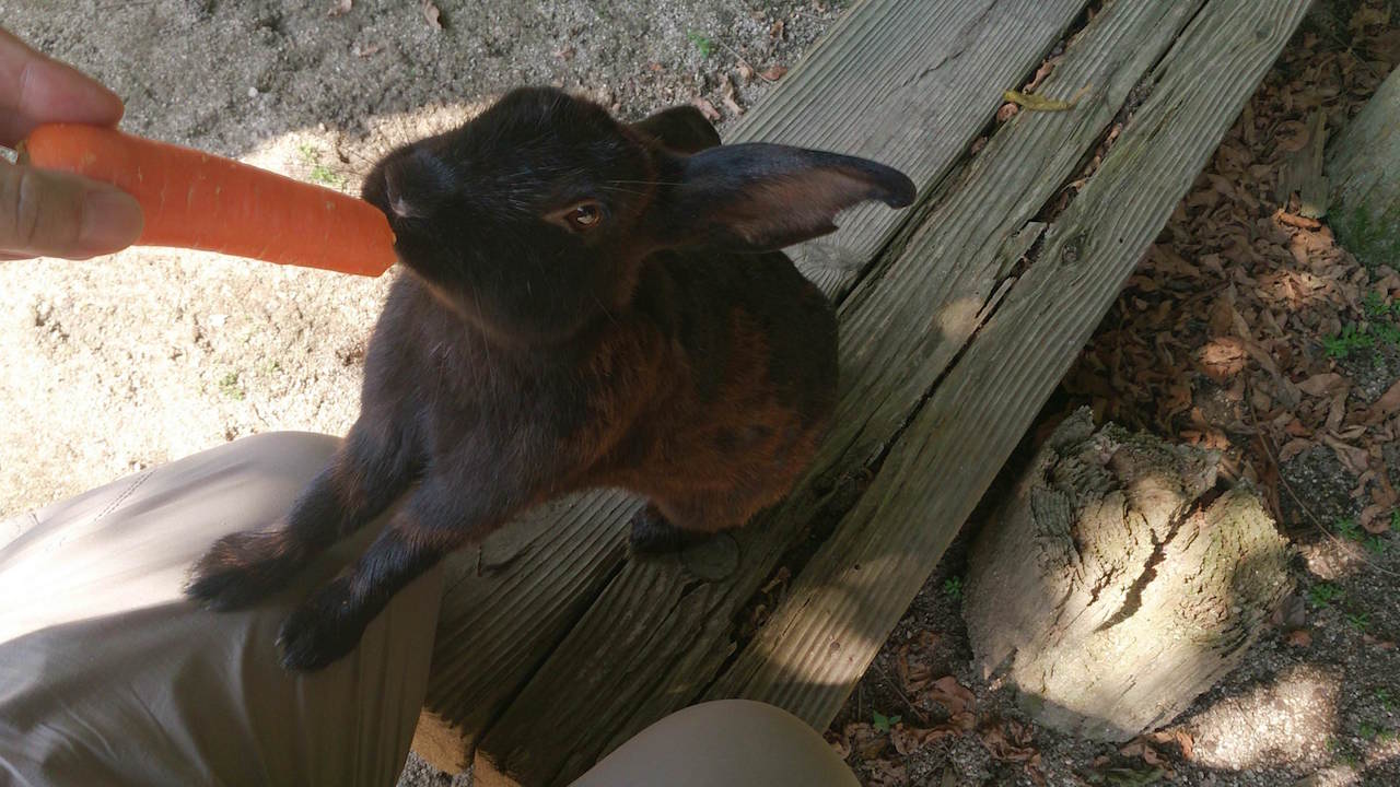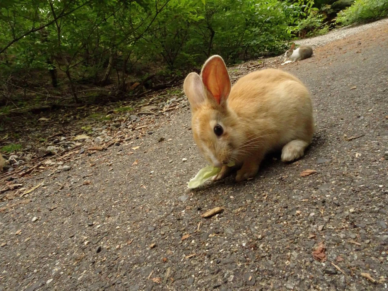 船着き場や休暇村の前にいるウサギよりかは山道や頂上にいるウサギにエサをあげたくなるわ