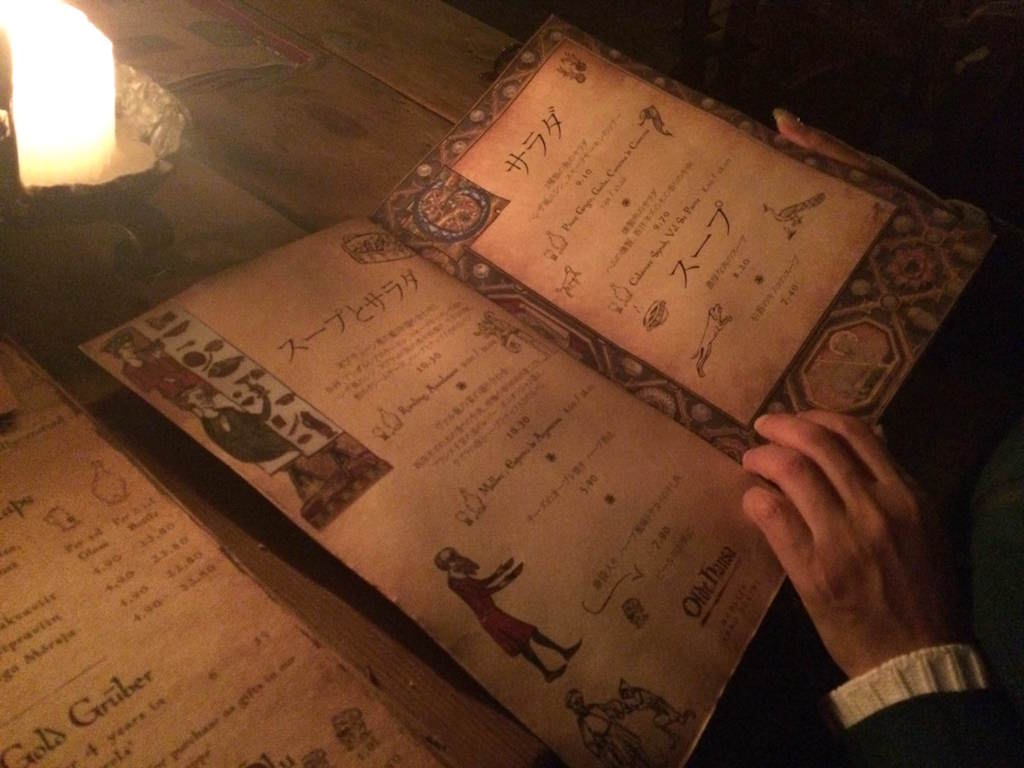 中世のコスチュームをきたウエイトレスさん可愛すぎる!それと日本語表記のメニューは有難い!