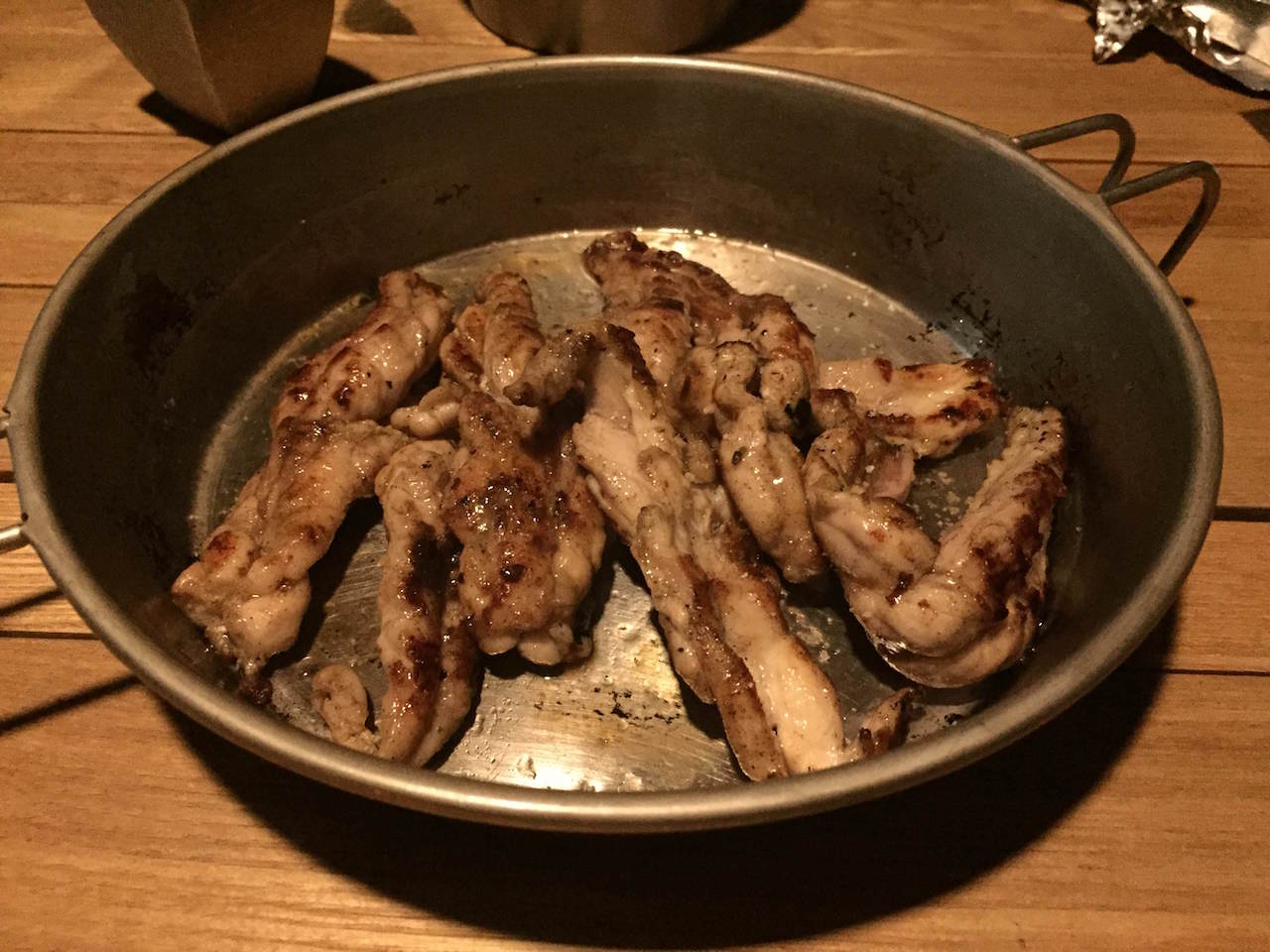 夜ご飯はレンコンのはさみやきとせせりでした。
