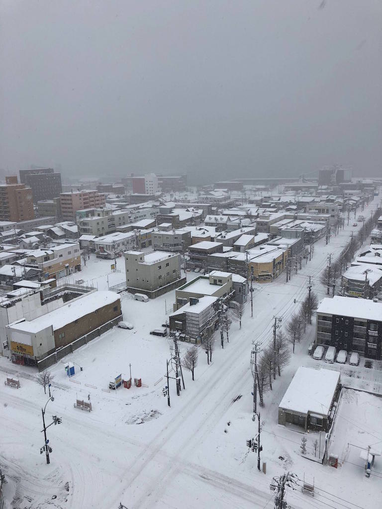 雪降ってて草 スリップとかしないのか?