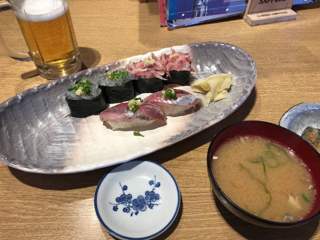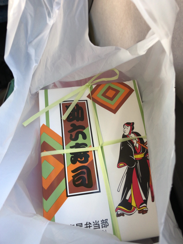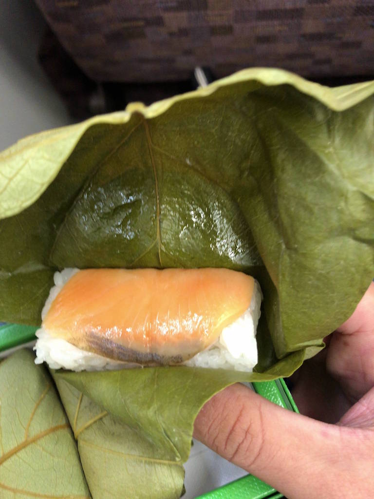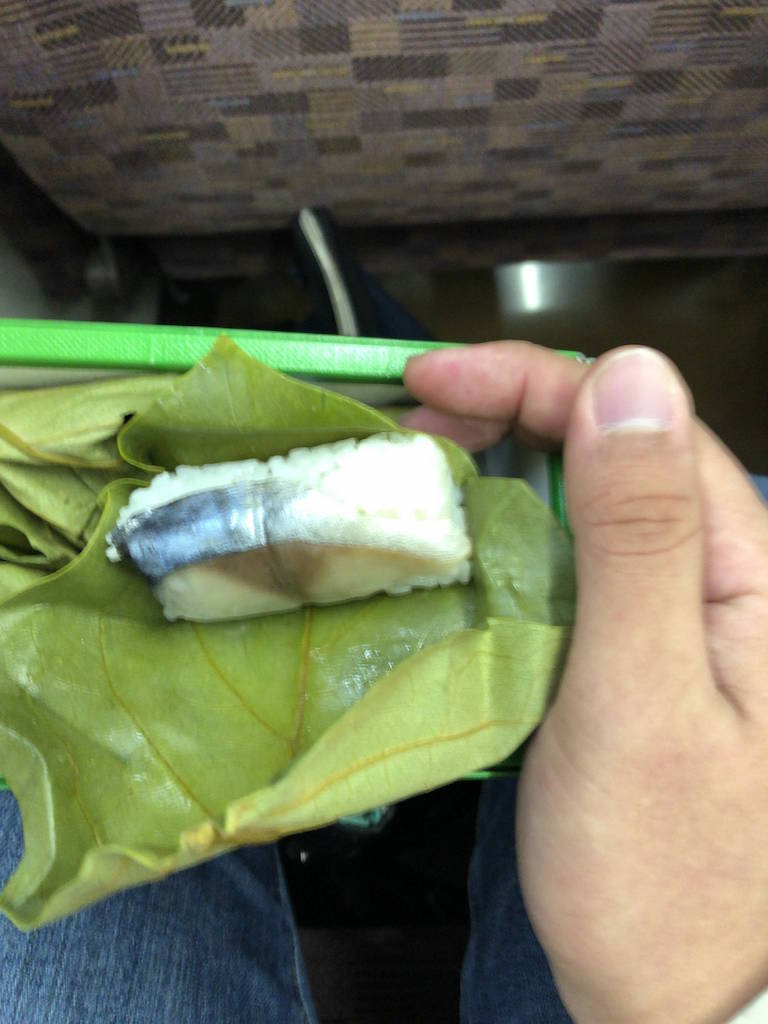 岡山を出発したので、大阪で買ってた柿の葉寿司を食べる
