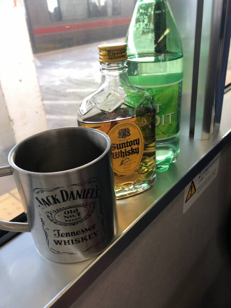 車内で買ったら高くつくんよなぁ、1000円くらいするから我慢や