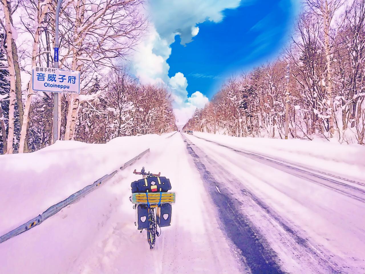 冬期の北海道を自転車で