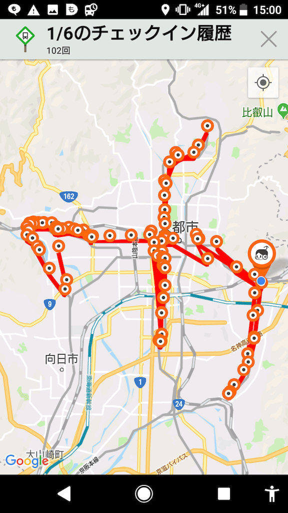 PCで見たら経路上のポイント
