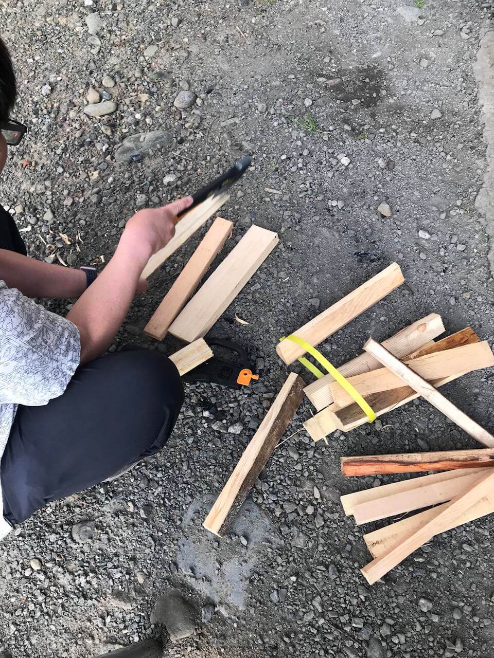 千葉に行く予定だったから、アルミペグしか持ってこなかったんで、恐る恐る叩く