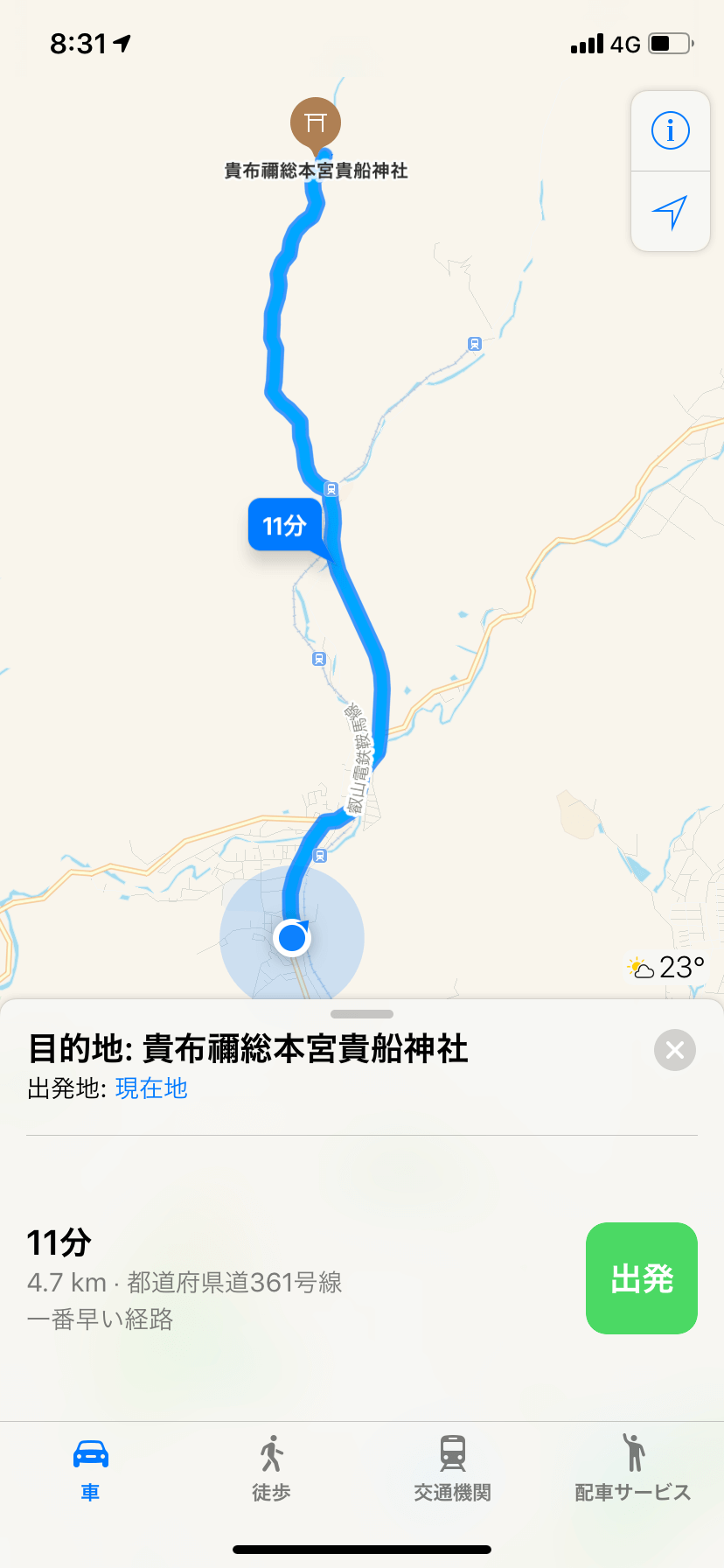 脚貧弱やから最悪近くまで行ってバスかなんか乗る予定