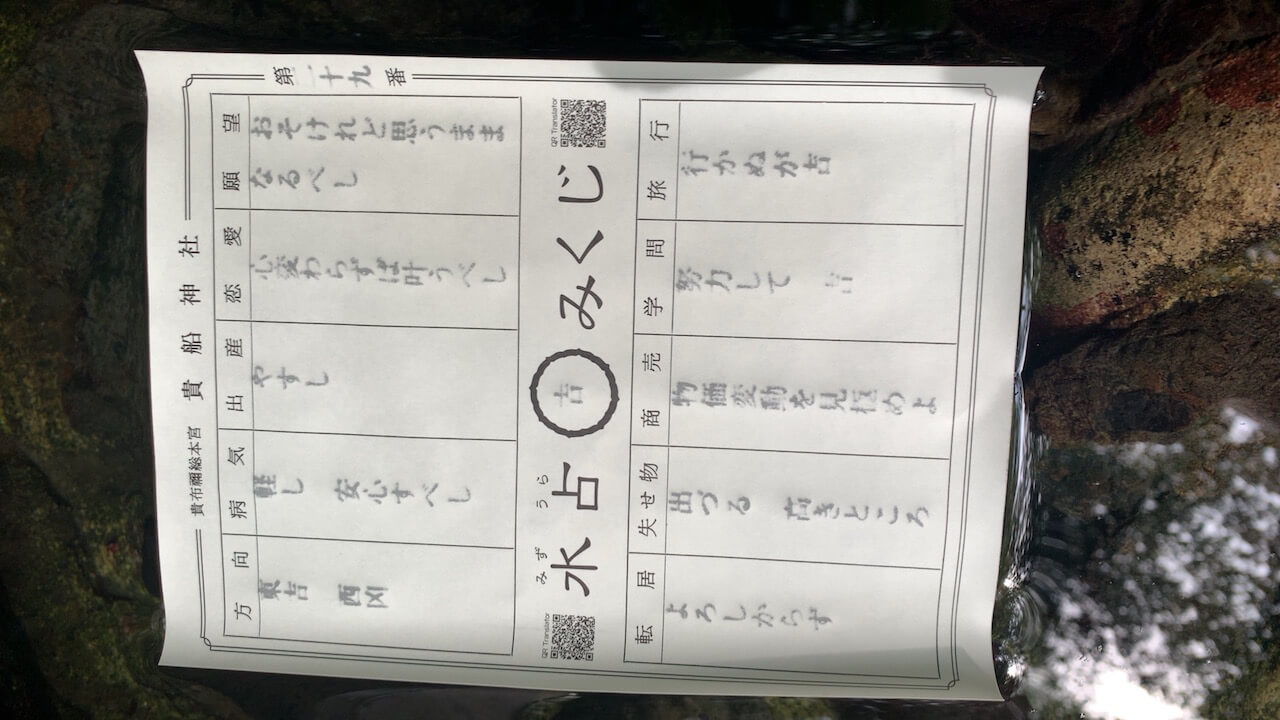 水に濡らしたら恋愛運が浮かび上がるオミクジがあるで。水の神やからな。