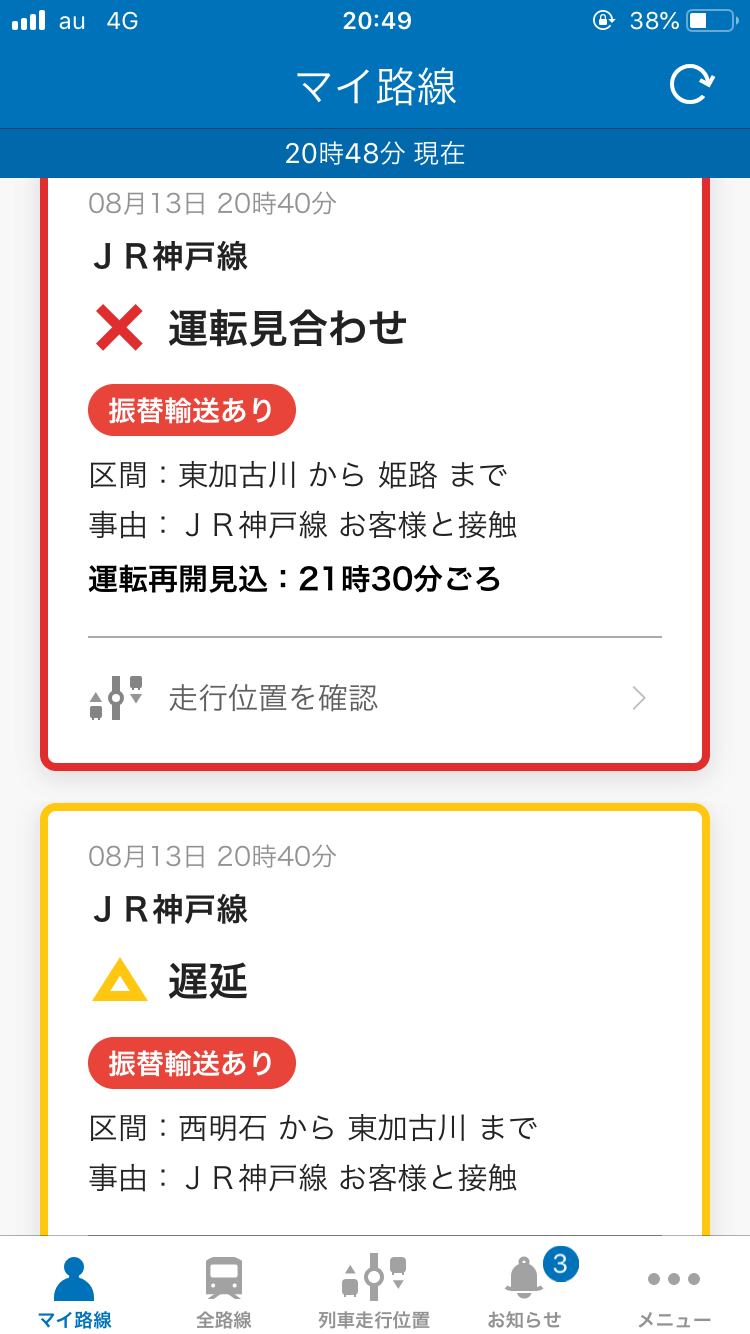 車掌曰く姫路着いても接続できない可能性濃厚とのこと