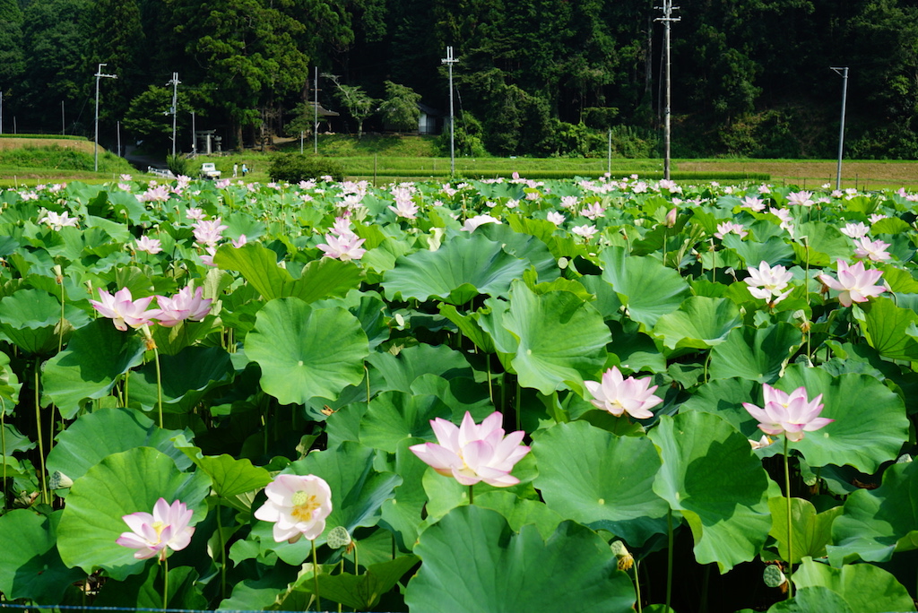 いきなり田んぼの1区画に蓮が咲いてる感じ