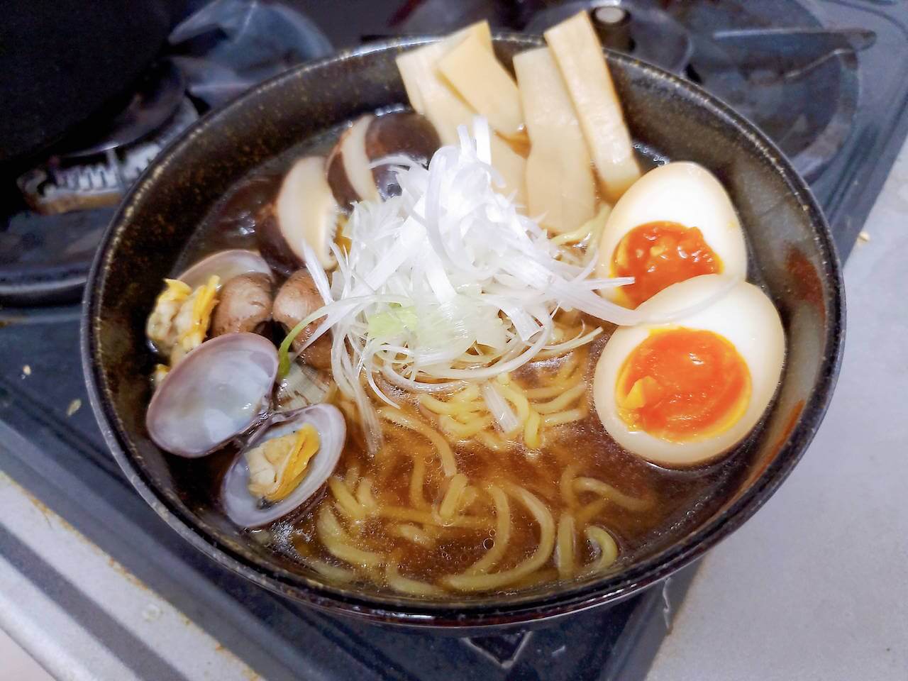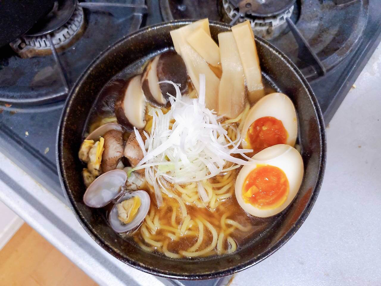 出汁はその時ある屑野菜や時に豚の背ガラ出汁に手抜きして市販の顆粒鶏ガラスープ合わせたりと決めてないけど、不思議と凝っても手抜きしても自分の味になっちゃうんだよな。