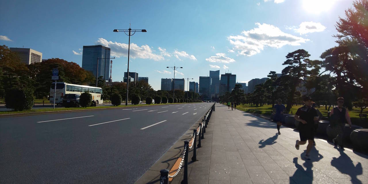 詳しい地名などはわかりませんが、皇居あたりを通ります
