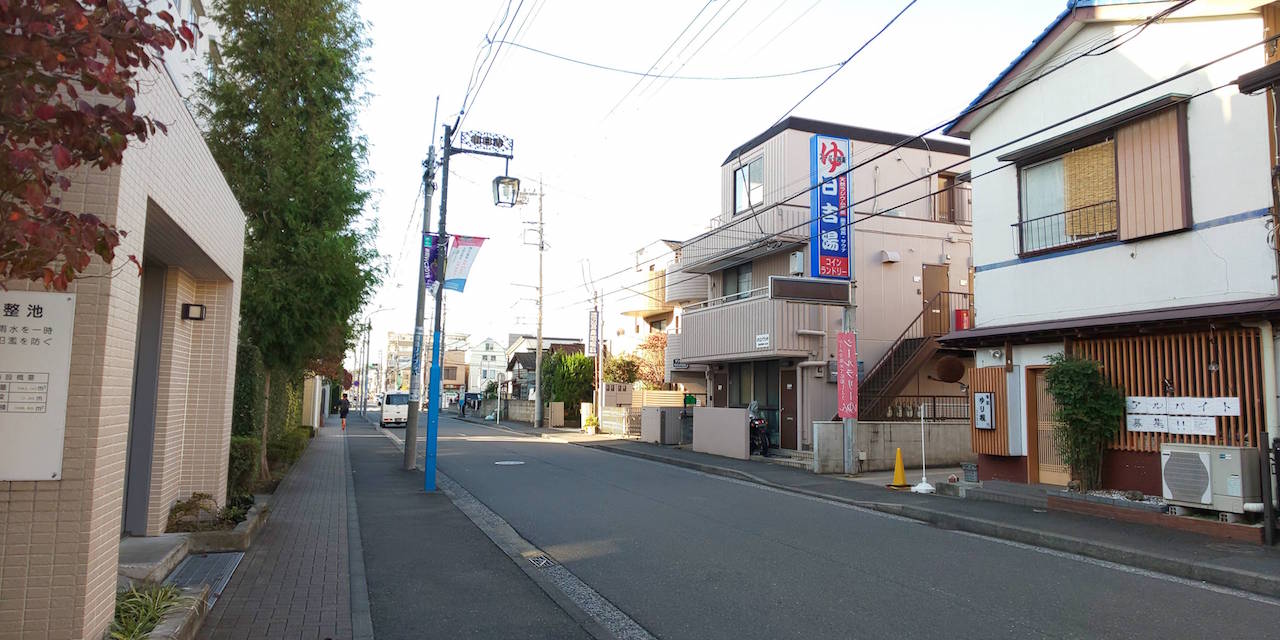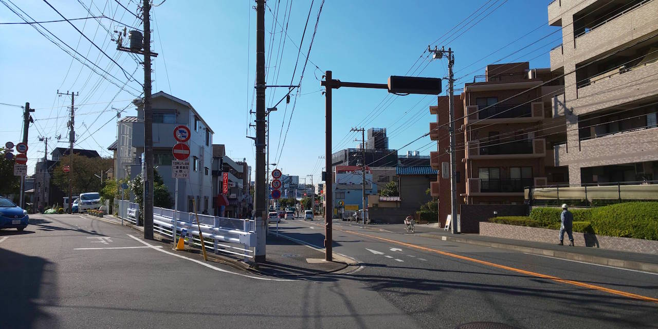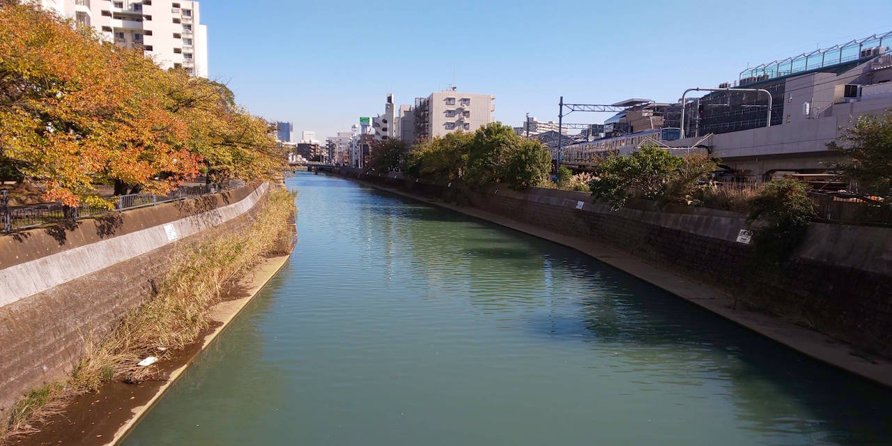 居木橋(いるぎばし)から中原街道向かい、矢口で川渡って