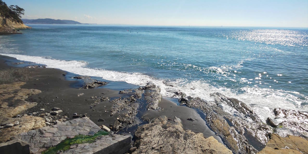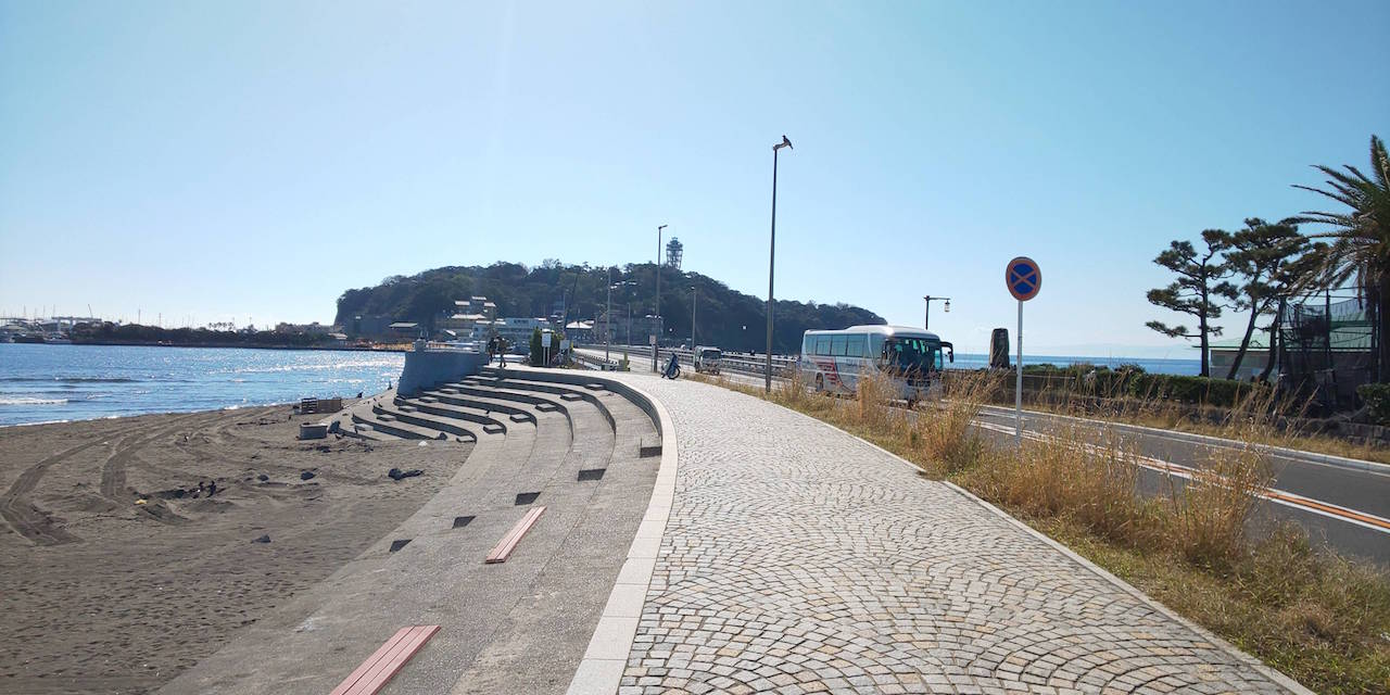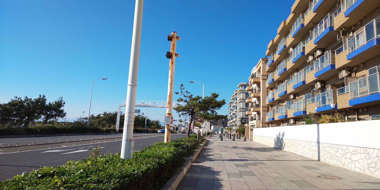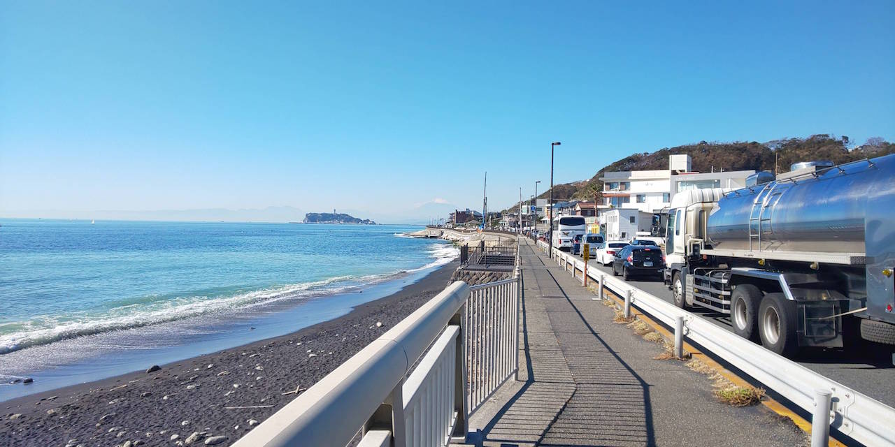 江ノ島まではひたすら海岸沿いにそって歩く。