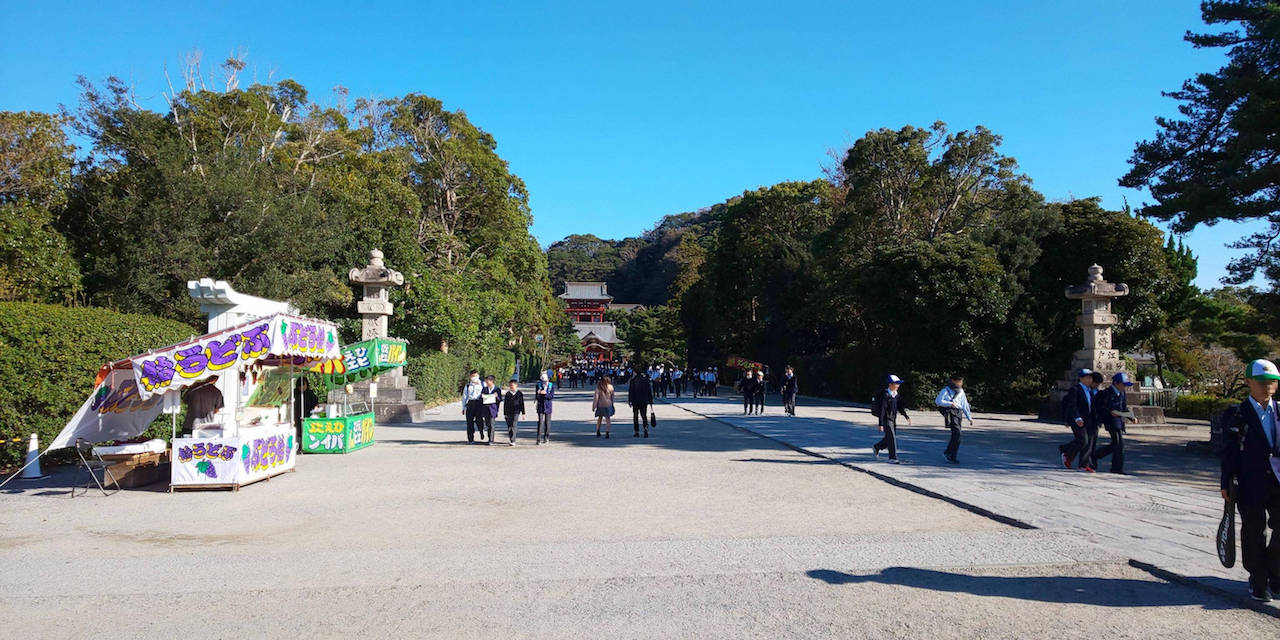 ゴールであった鶴岡八幡宮は朝早いこともあり、静かでした。