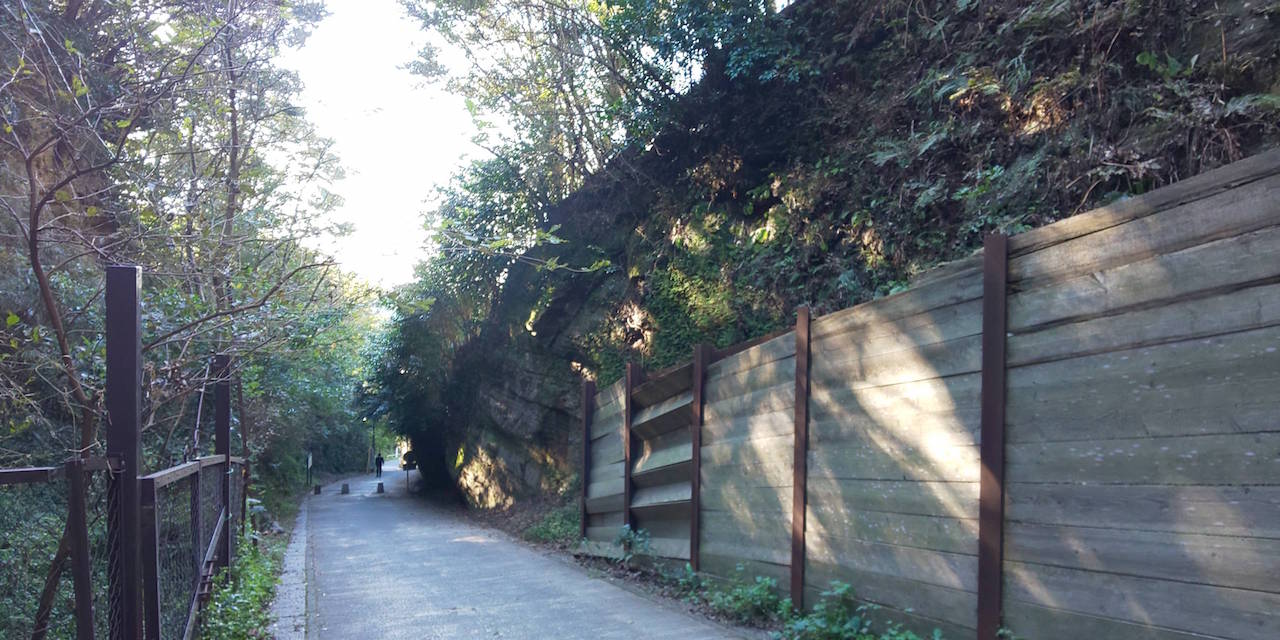 今回は倒木によって、朝夷奈切通は通りませんでしたが、鎌倉駅へ向かう道中に切通のひとつを抜けました。