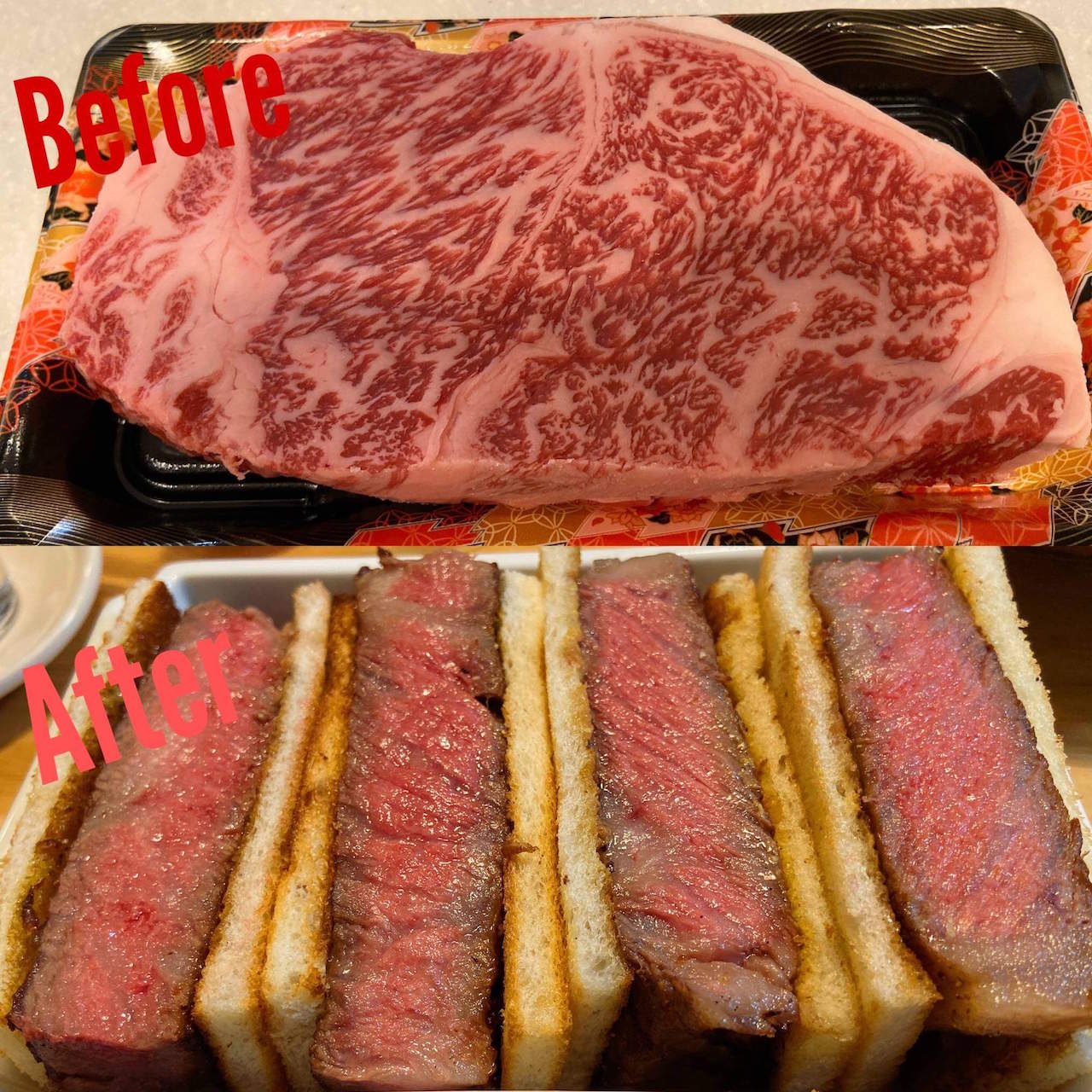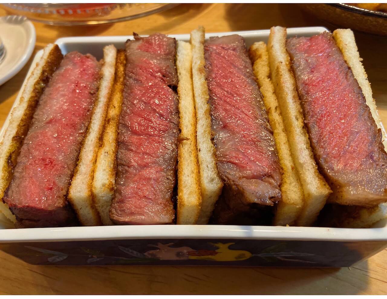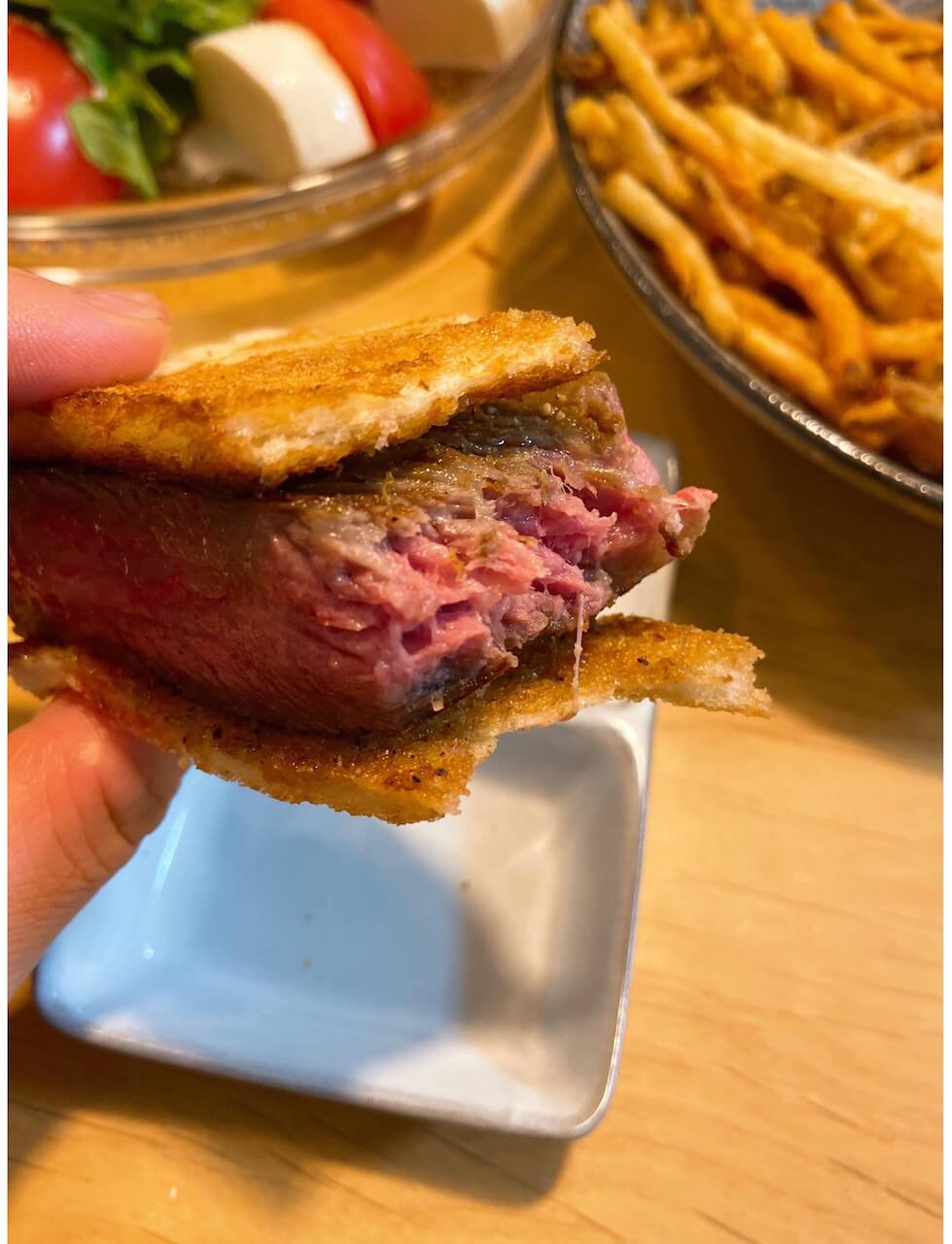 実は、作る前は和牛でステーキサンドはちょっと贅沢すぎるかな~と思ってたんだけど、食ってみて和牛の食い方として完全にアリだと思いました