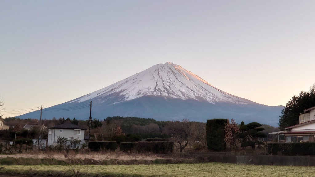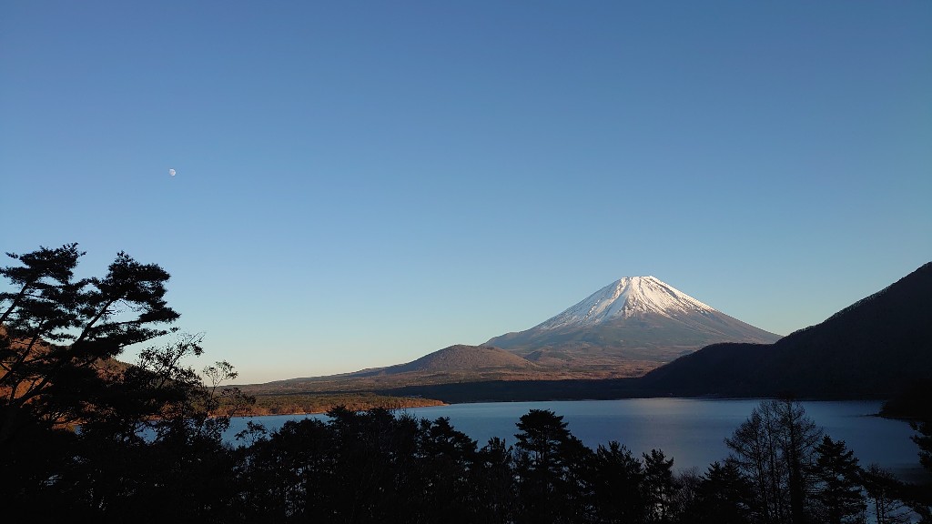 西陽に照らされる富士山がかっこよかったので途中のコンビニでとまって写真を撮る