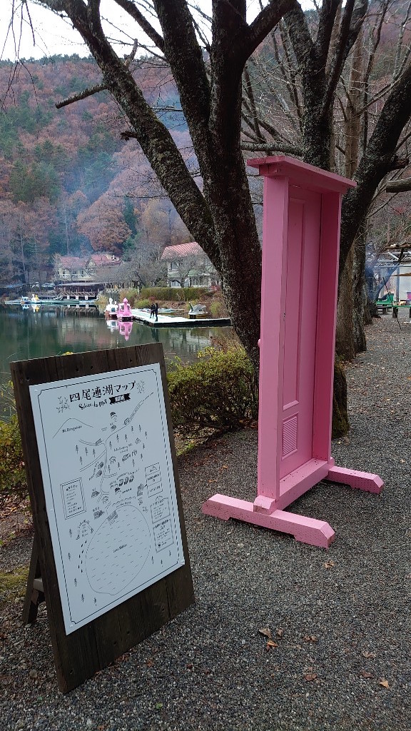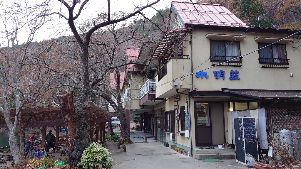 四尾連湖は外周ぐるっと歩けるようになっていて、龍雲荘と水明荘は本当に隣同士ですぐに行けちゃう