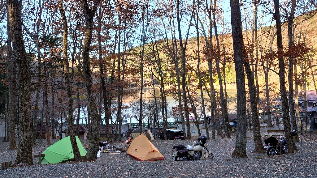 なでしこ達が歩いた湖畔の道をぐるっとして水明荘さんの方のキャンプ場へ