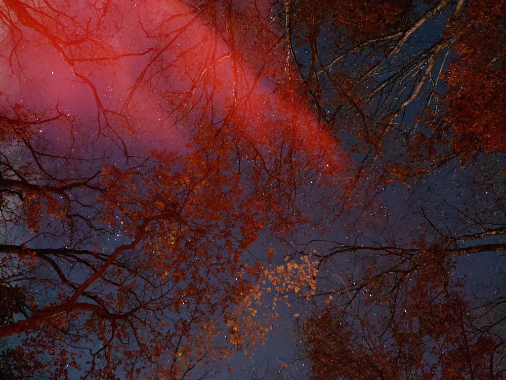 多分撮るときに焚火の炎が被っちゃってちょっとわかりにくいけど、見上げたらこんな感じ