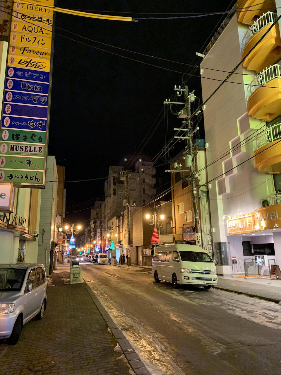 年の瀬のためか寂しげな夜の街。