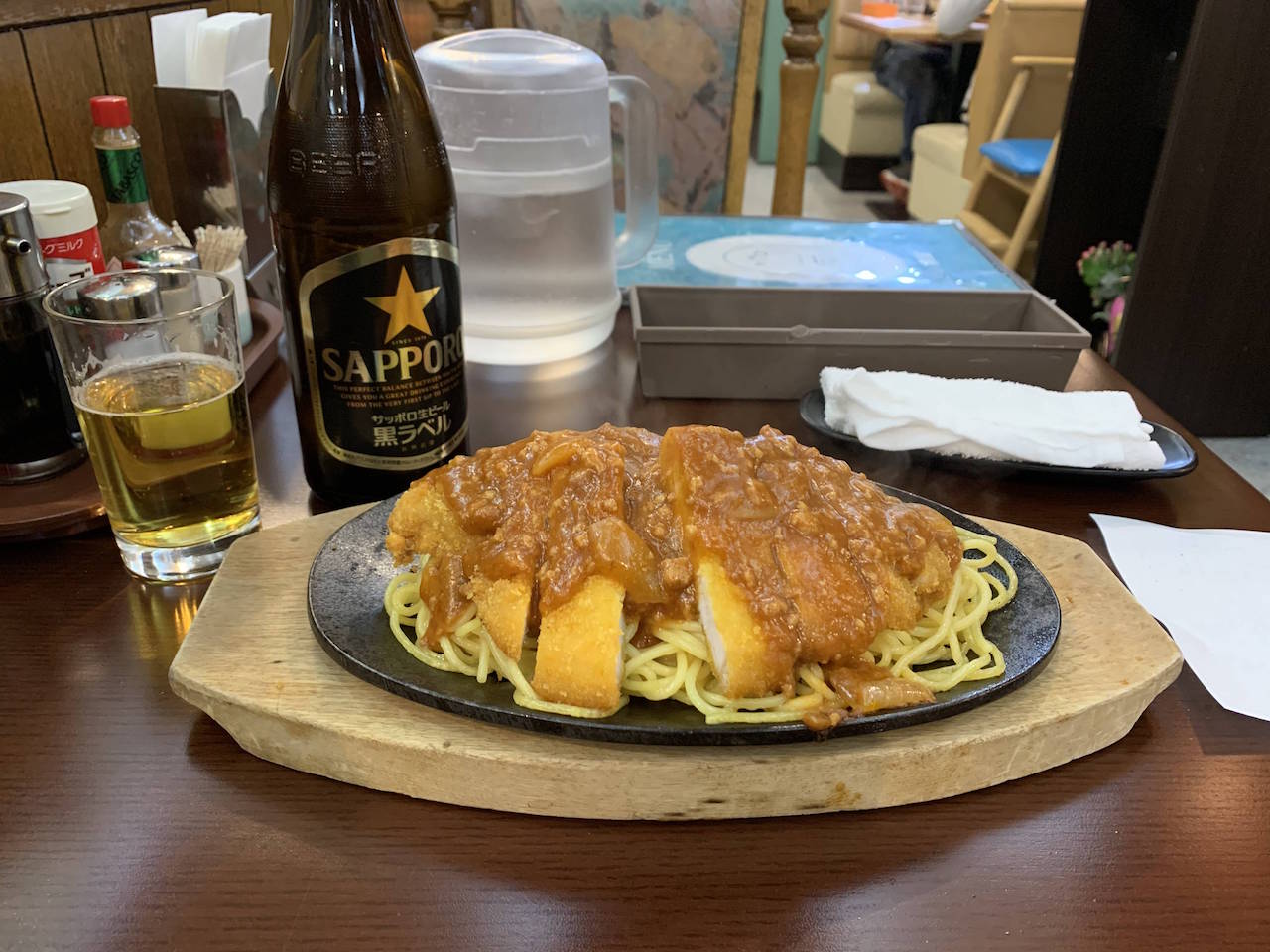 スパゲティとトンカツ。