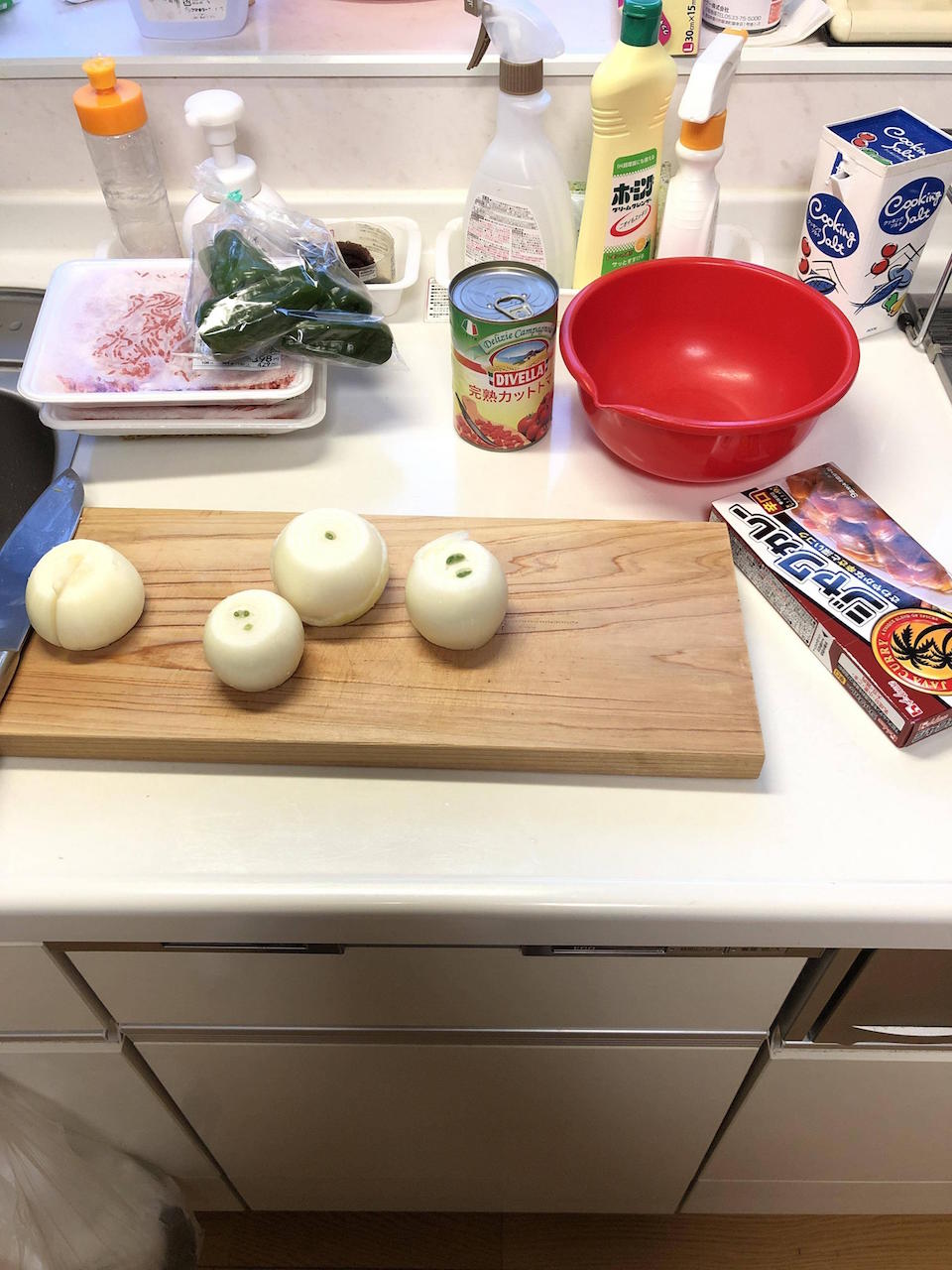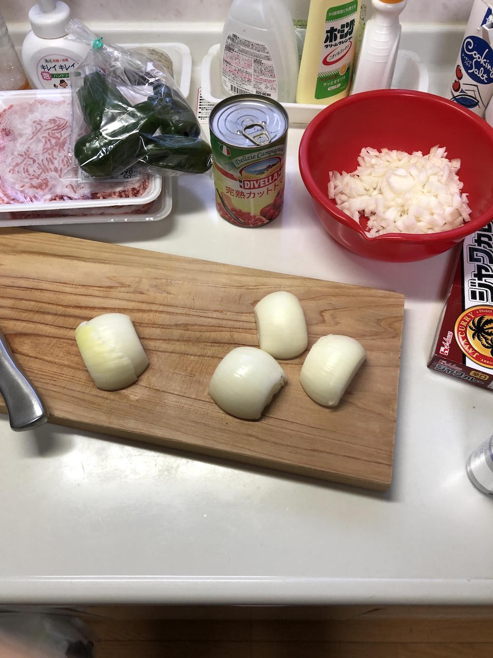 たまねぎがまだ50個くらいあって芽が出てきてるから早く使わないとやばい