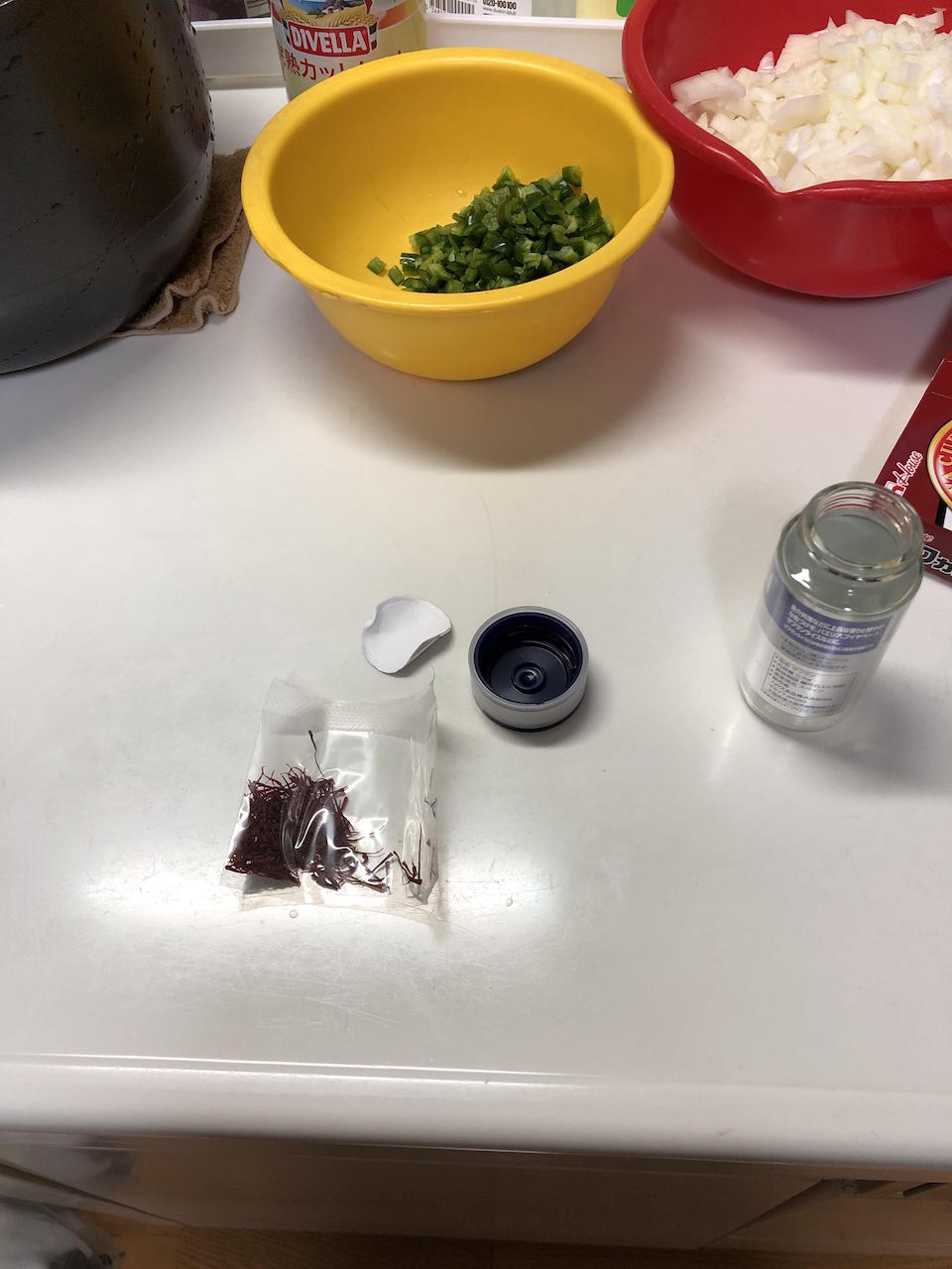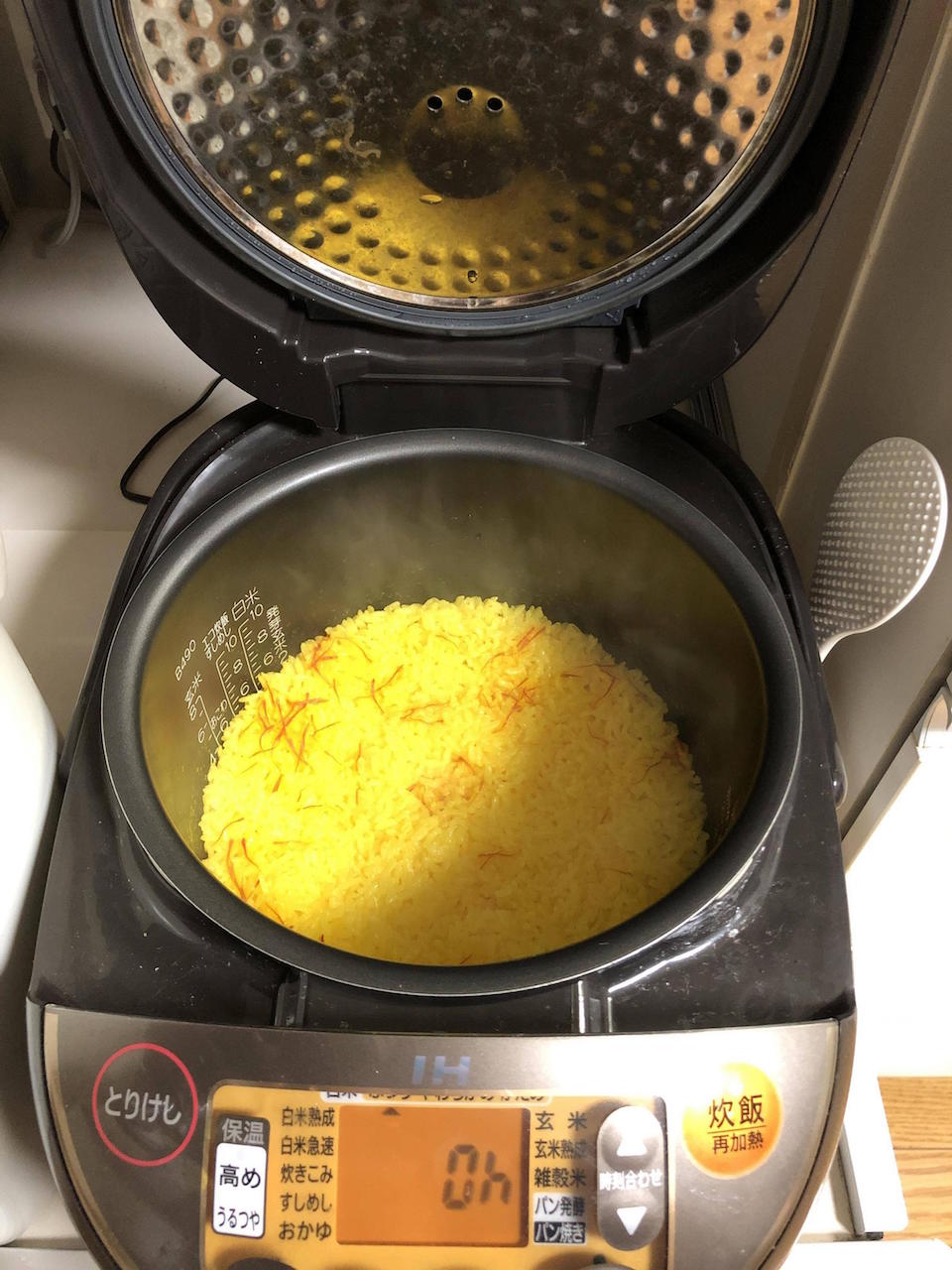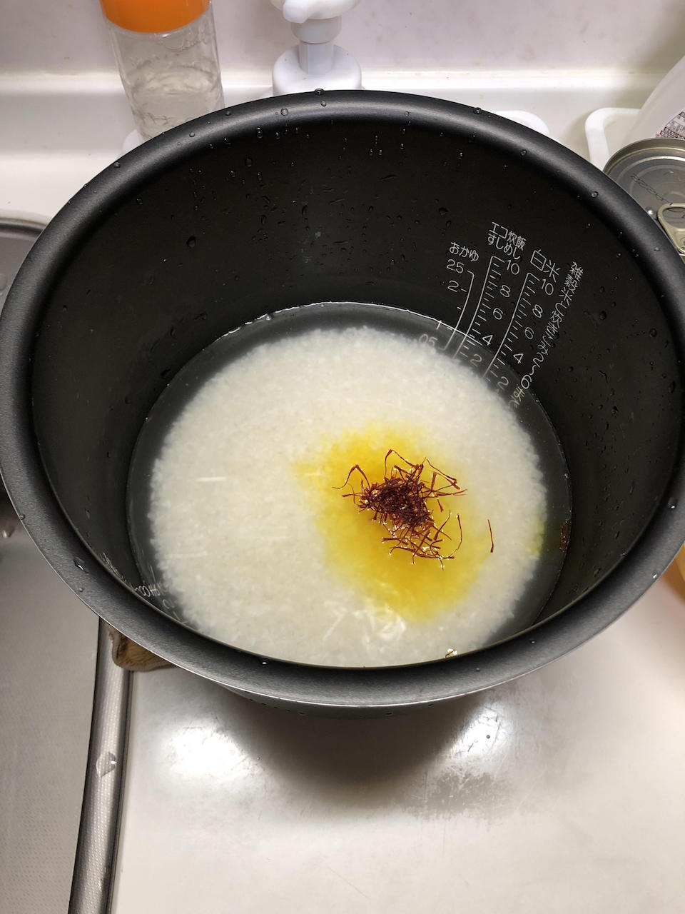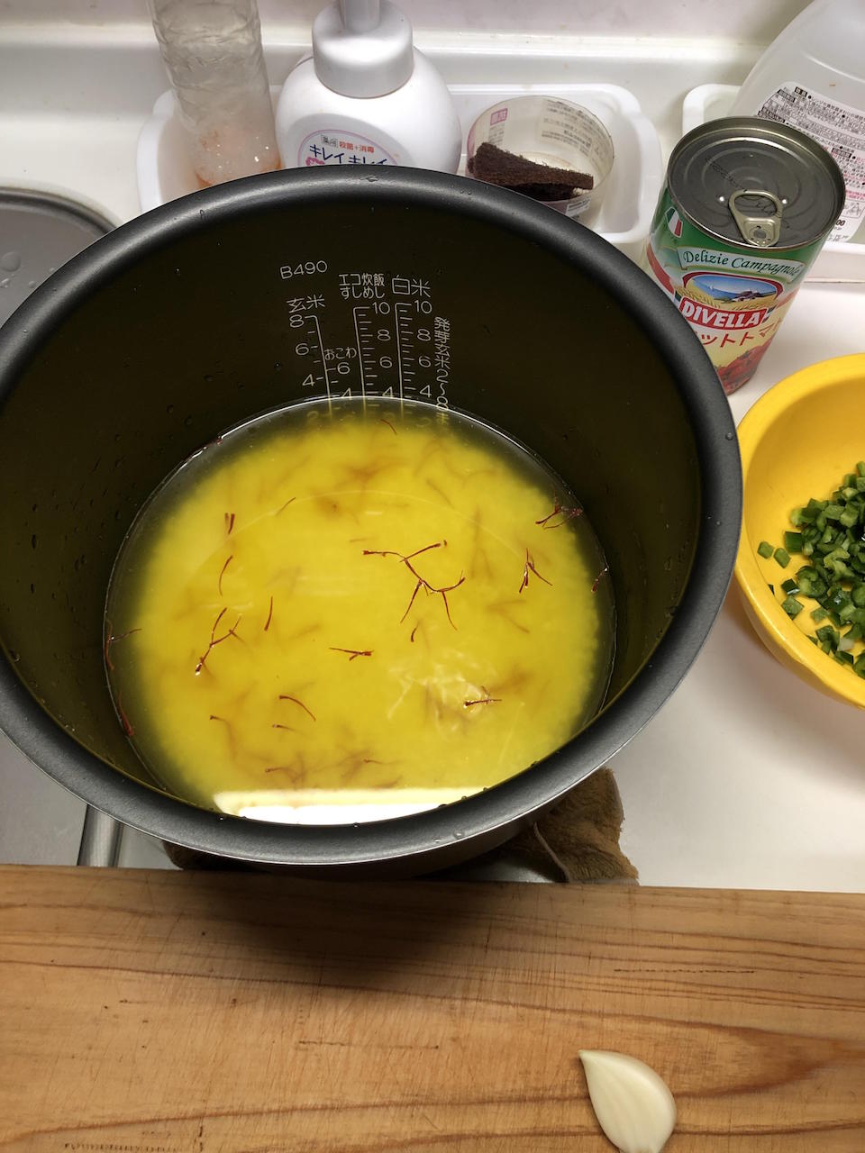 サフランライスは炊くの初めてやから上手く出来るか心配