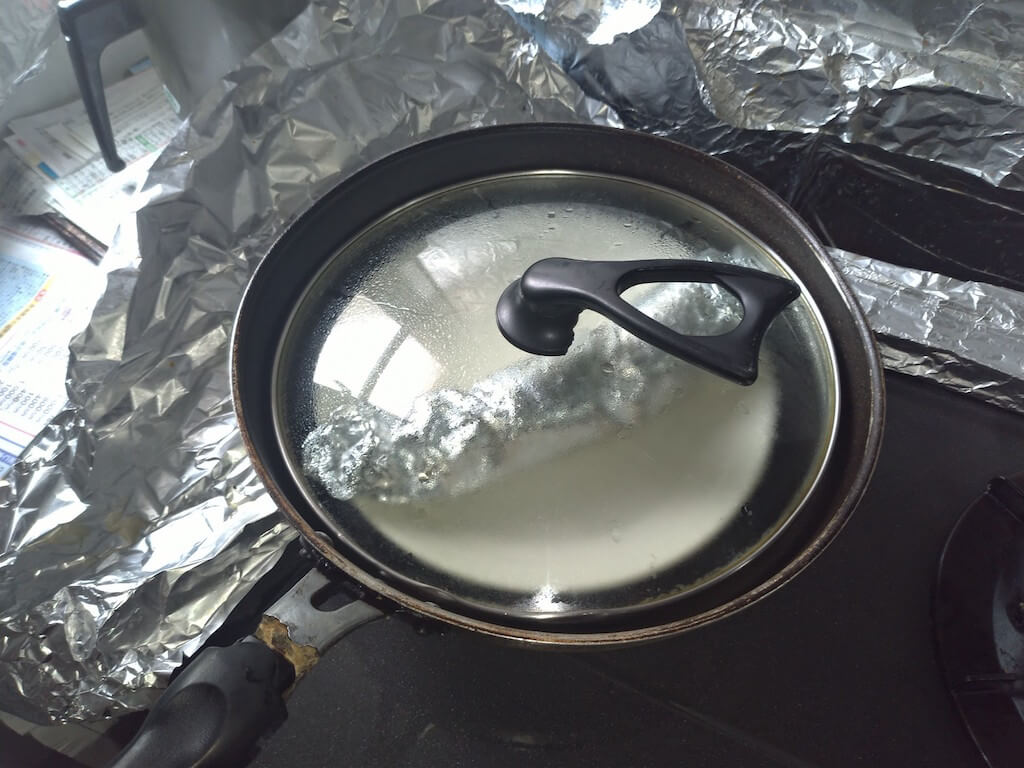 蒸し器無かったから画像の通りフライパンにお皿入れた