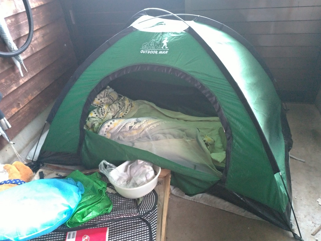 納屋みたいなところでテント貼ってるし、郊外に住んでる人と違うかな?