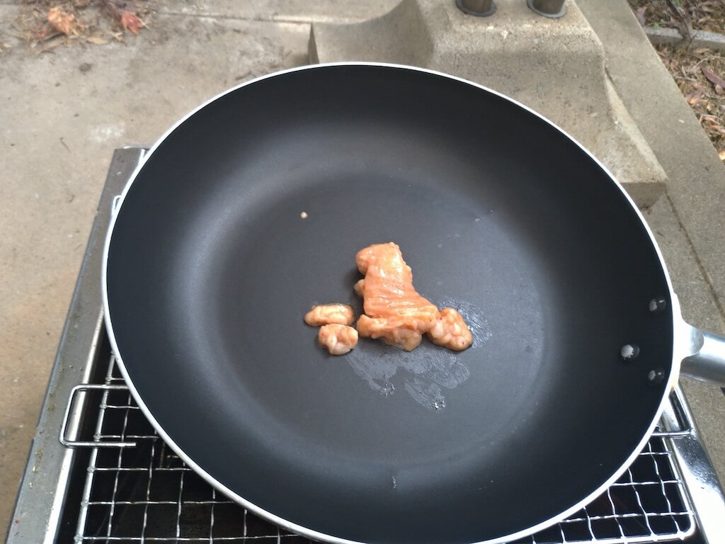 ベランダキャンプ風を装っているが、調理は普通に台所でやるのだ