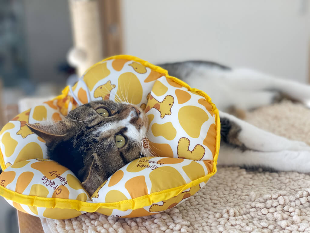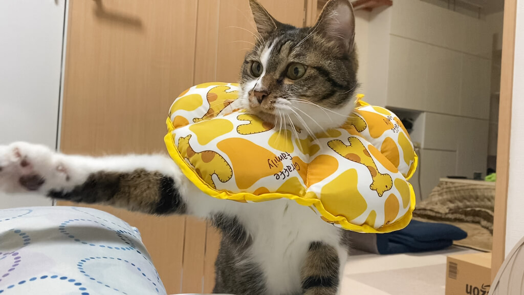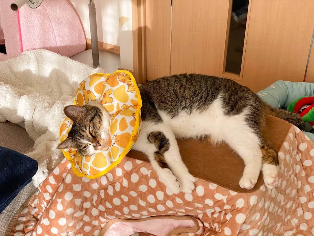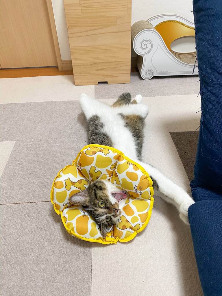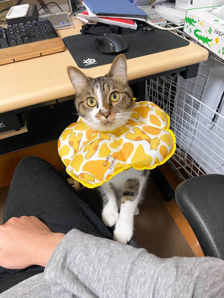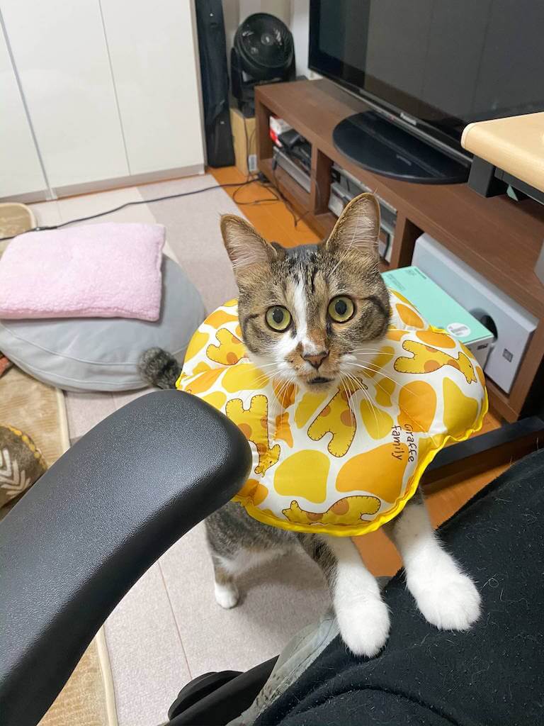 後頭部の辺りを自分で掻きむしっちゃったんでそれの防止やで