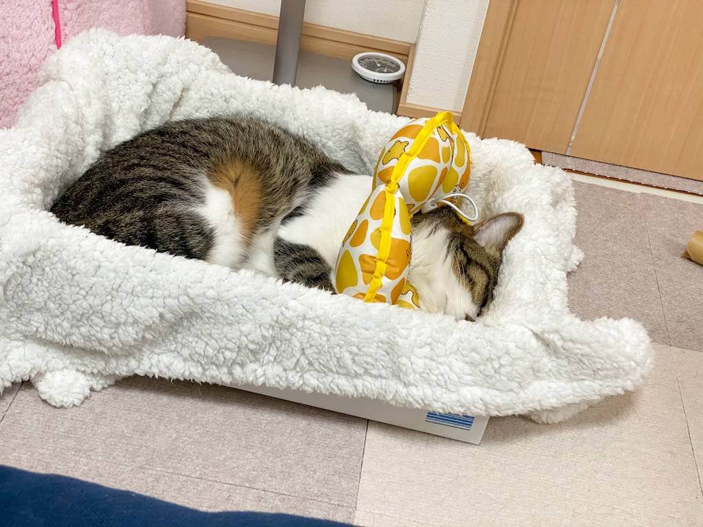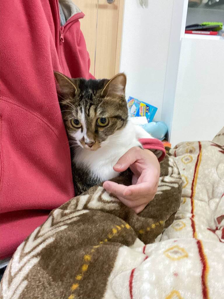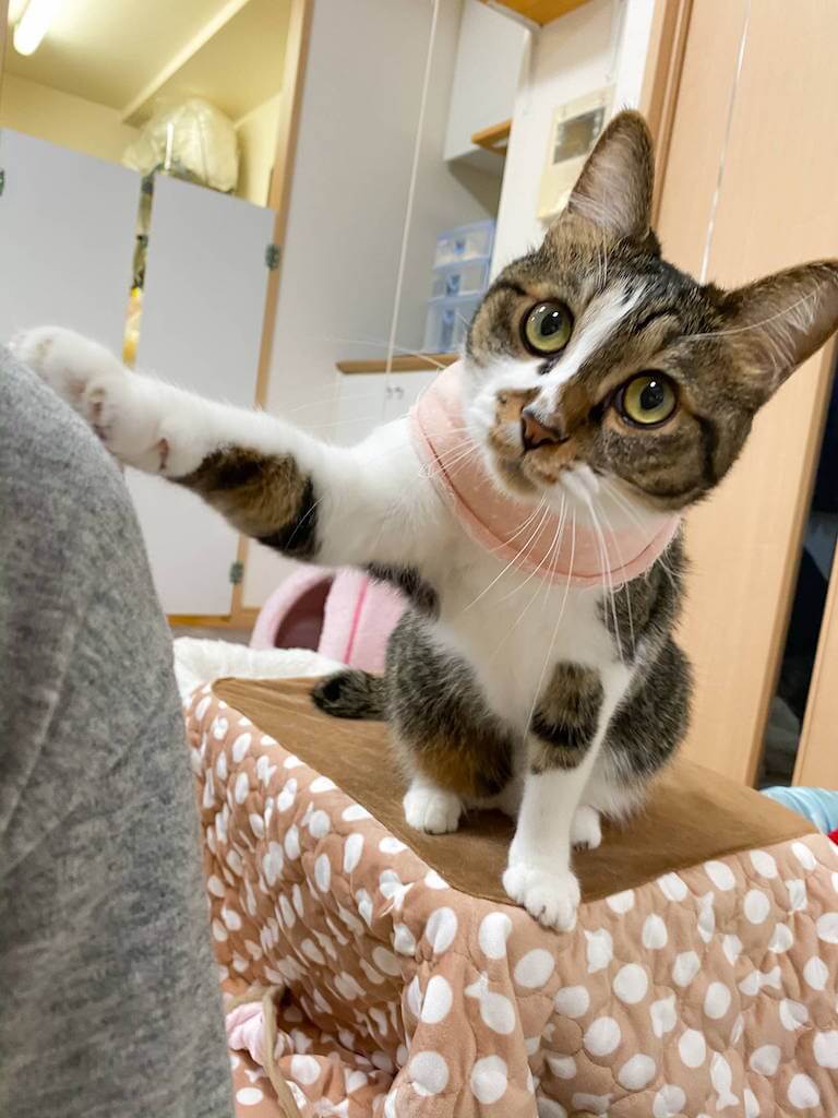コタツに一緒に入って暖まる。やっぱりここでもちょっとイヤそうな顔w