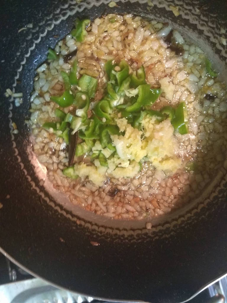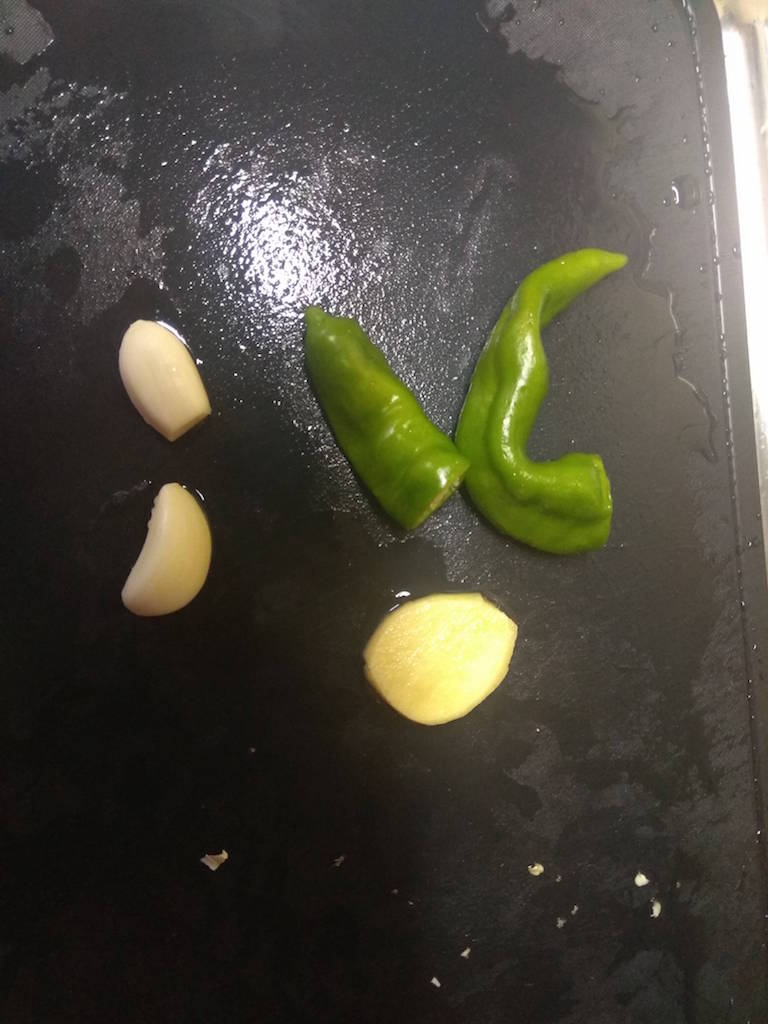 この間ににんにくと生姜はすりおろしてししとうはみじん切り本当は唐辛子がベスト