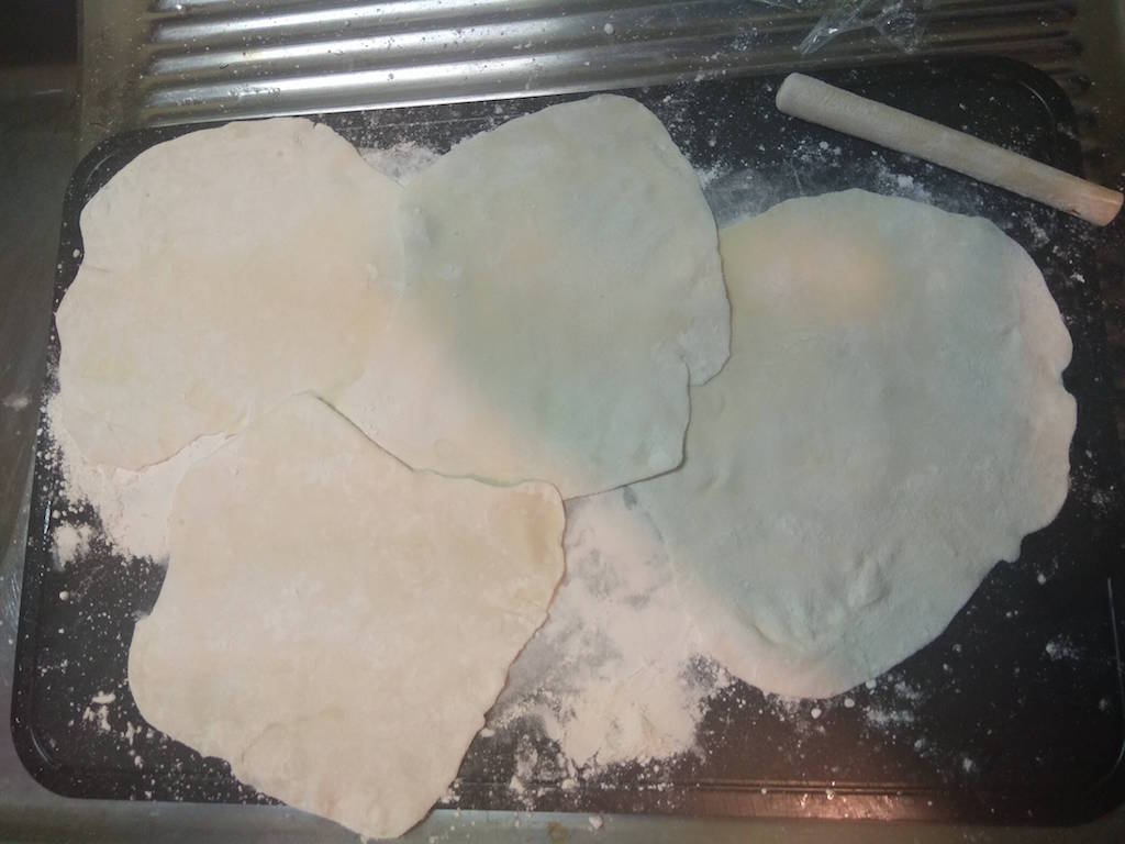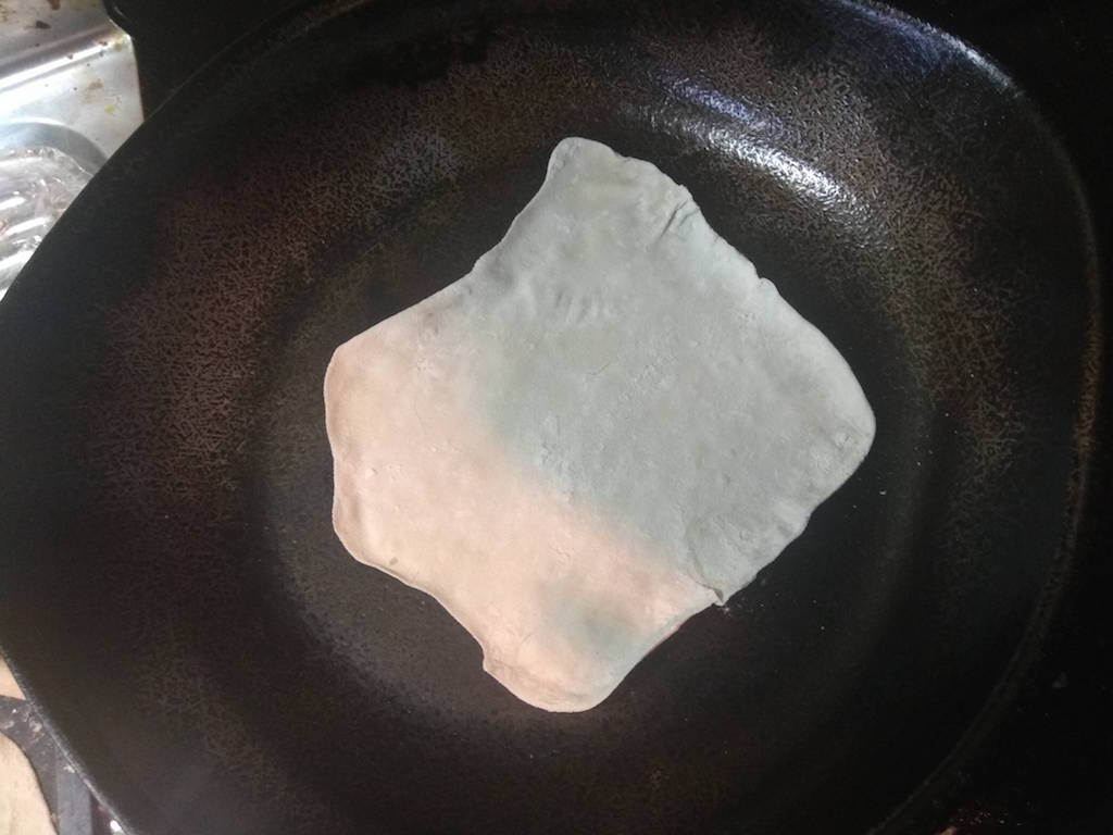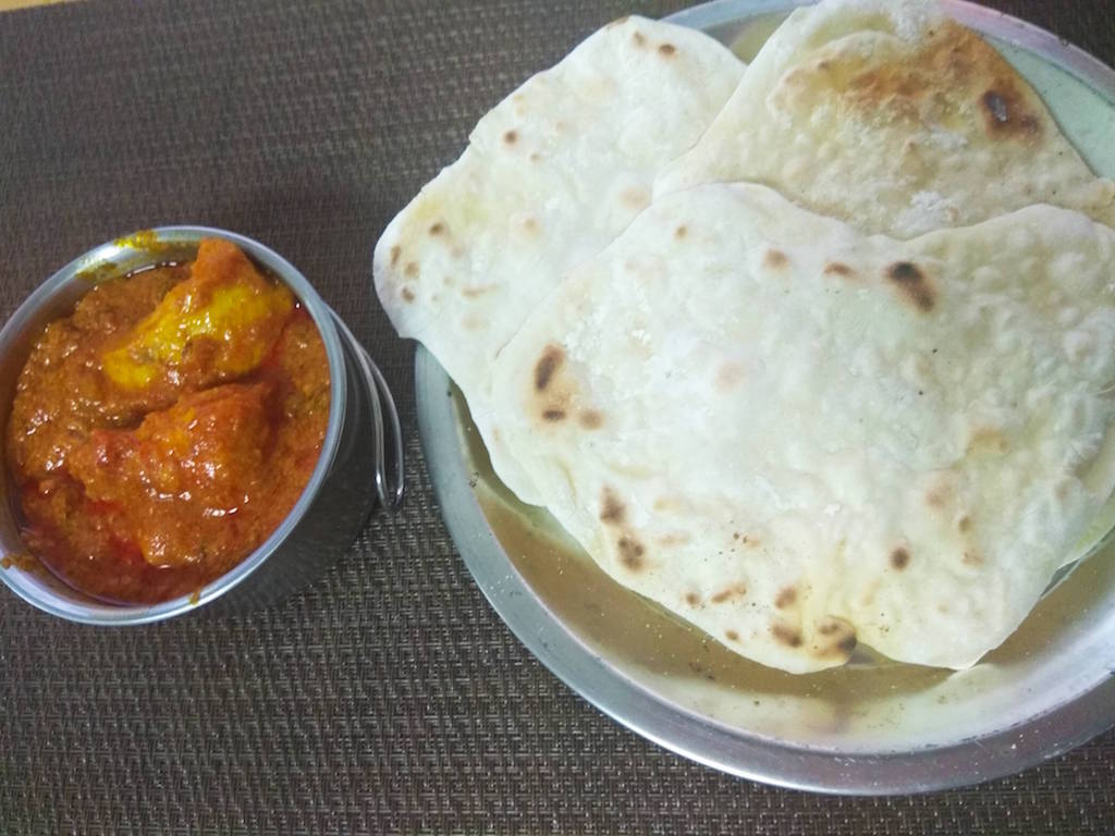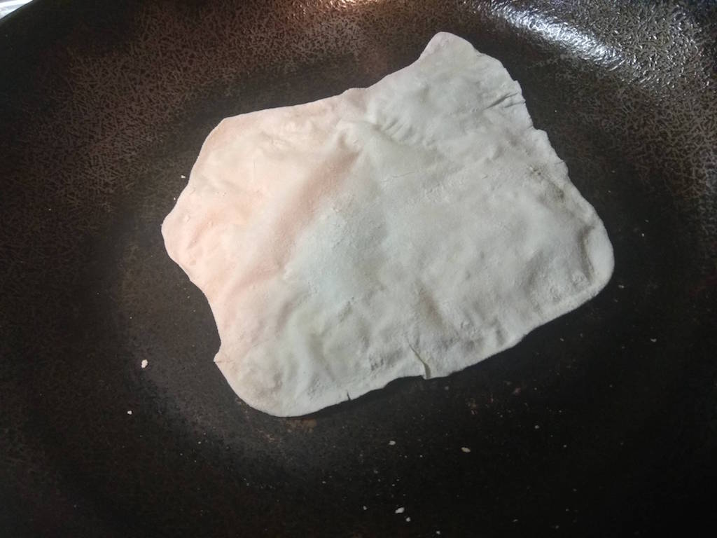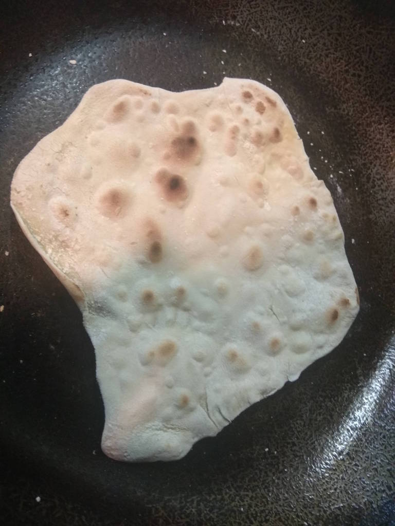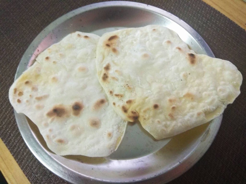 チャパティは小麦粉を練って少し置いただけで発酵無しフライパンで焼く