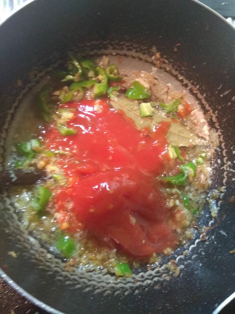トマトが煮詰まったらカイエンペッパー、コリアンダー、ターメリックを入れて弱火で少し香りを出す