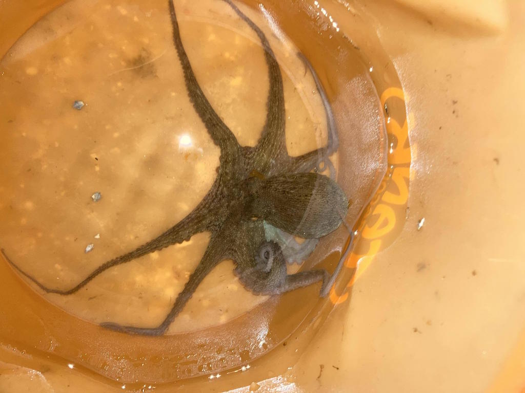 タコの処理には大量の塩がいるので家まで持って帰ります。