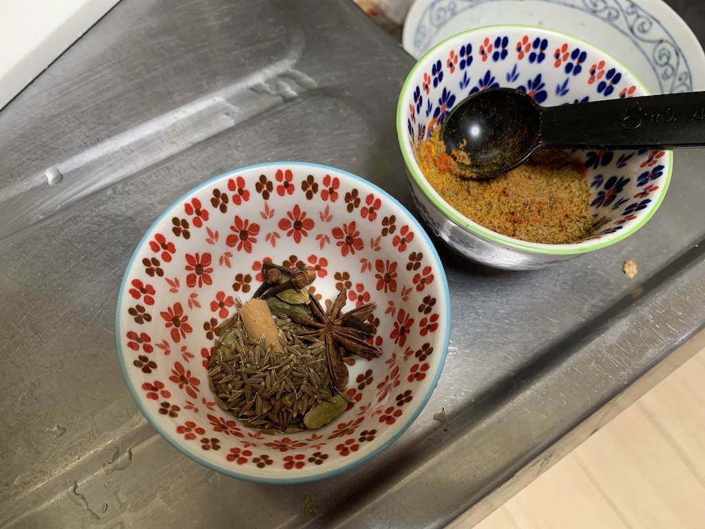 出汁とる間にスパイスをつくります